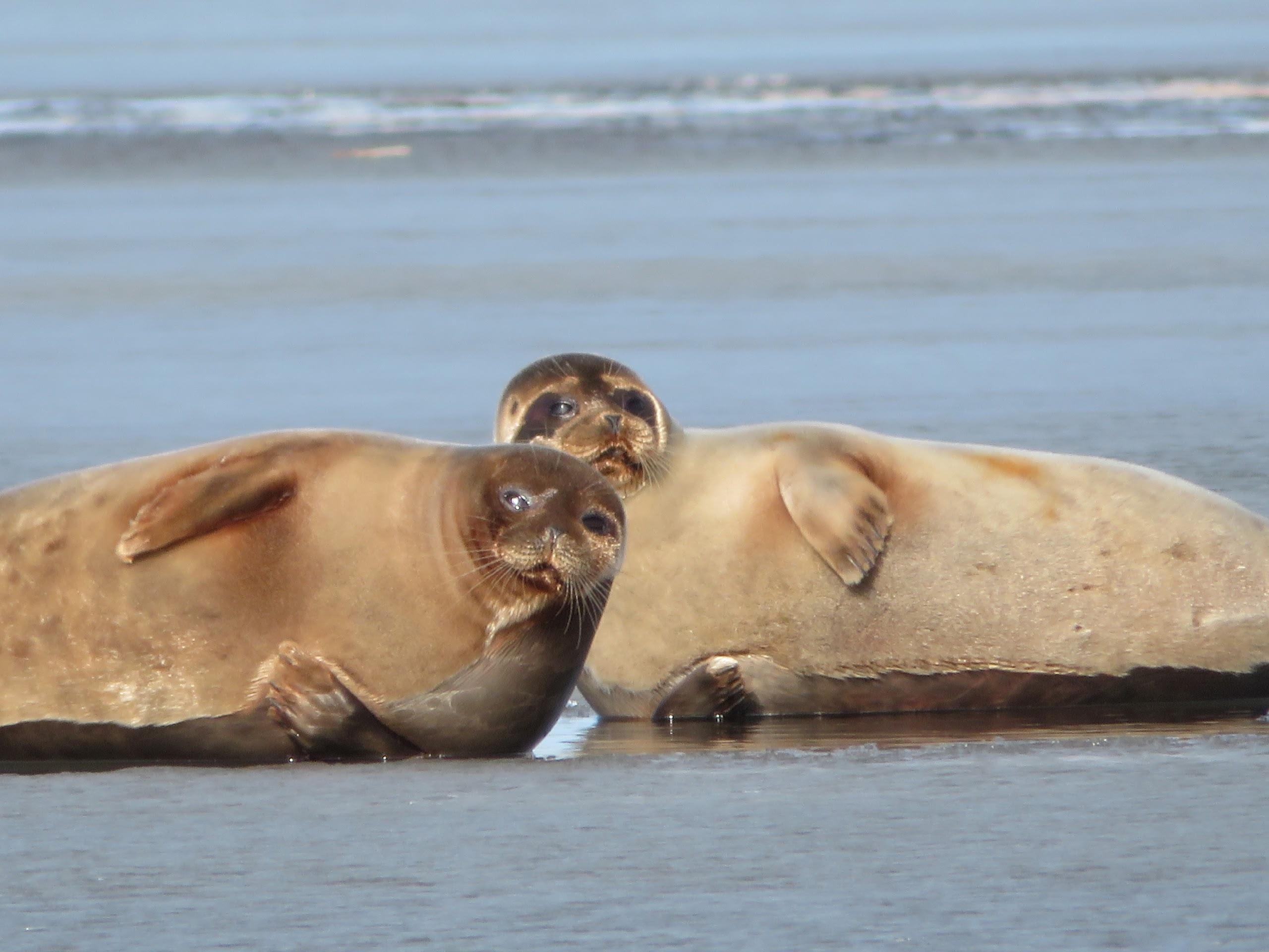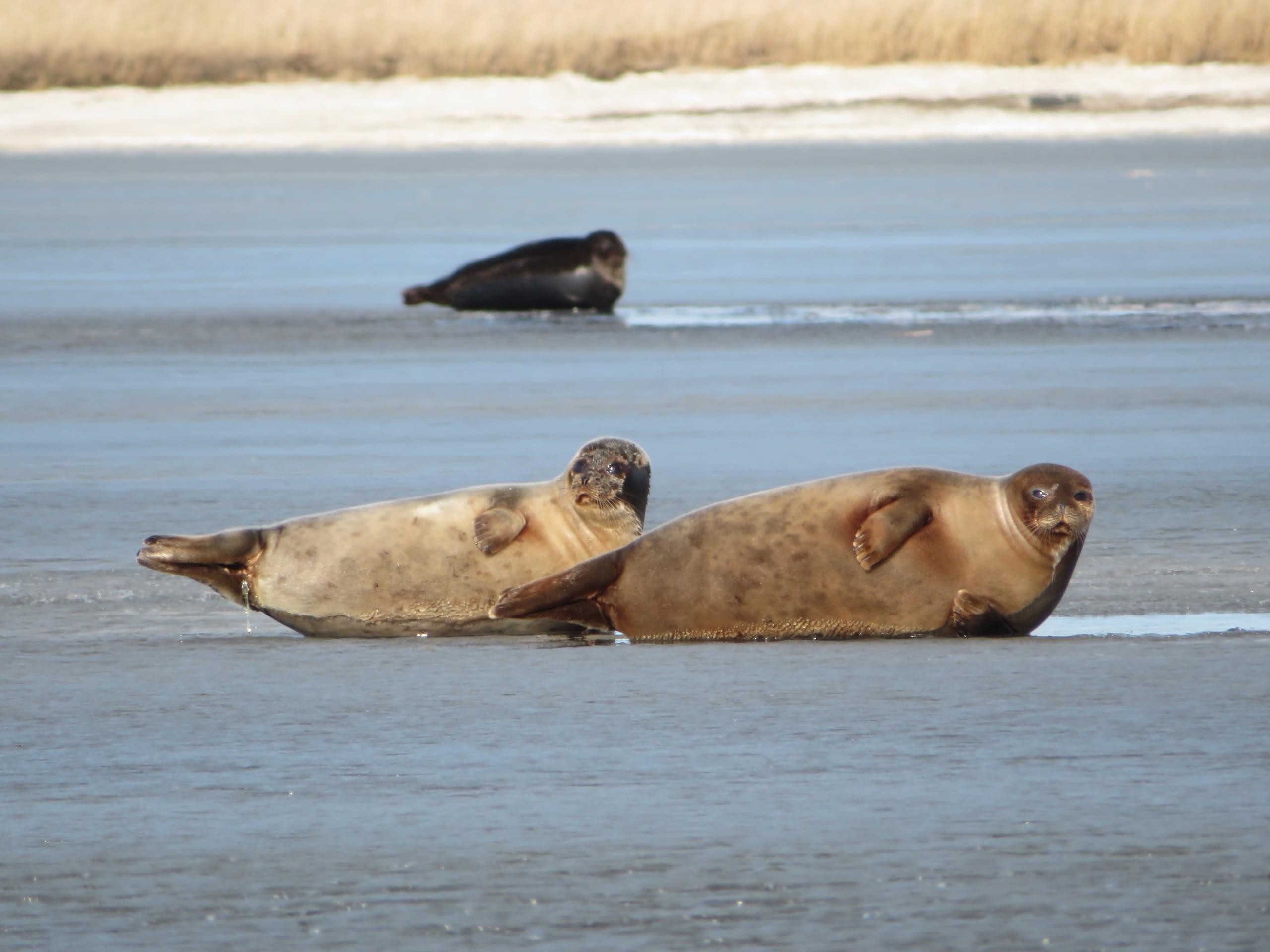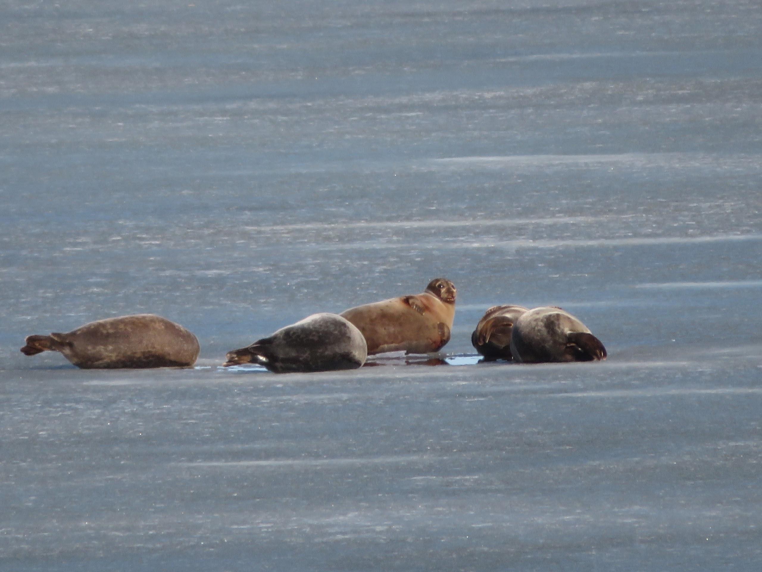 Жители Северодвинска наблюдали за нерпами и морским зайцем, которые спокойно отдыхали на берегу. Животные не проявили страха перед людьми.