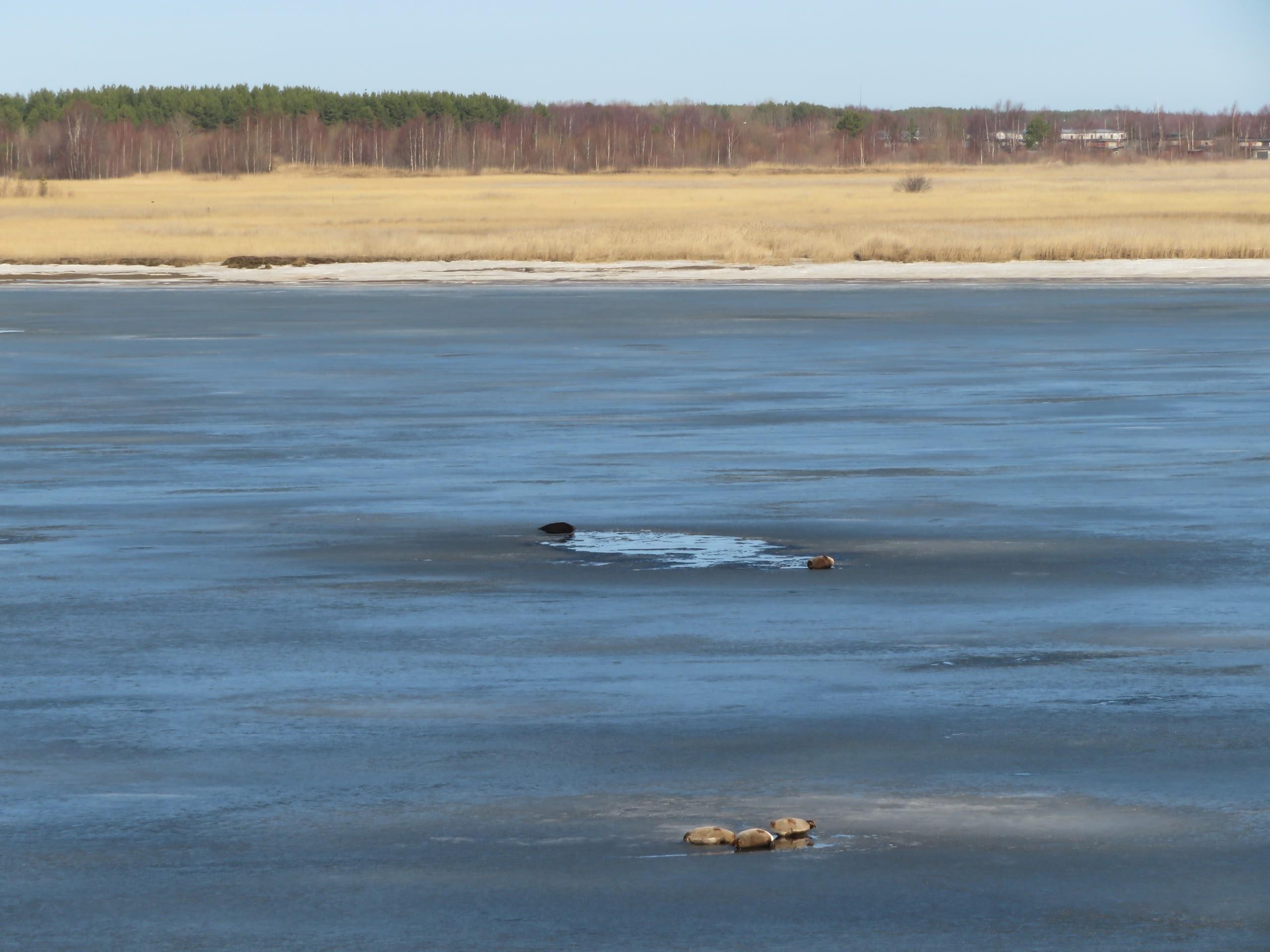 На берегу Белого моря в районе Северодвинска была замечена группа нерп и морской заяц. Животных, греющихся на солнце, сфотографировала местная жительница Светлана Звонарева.