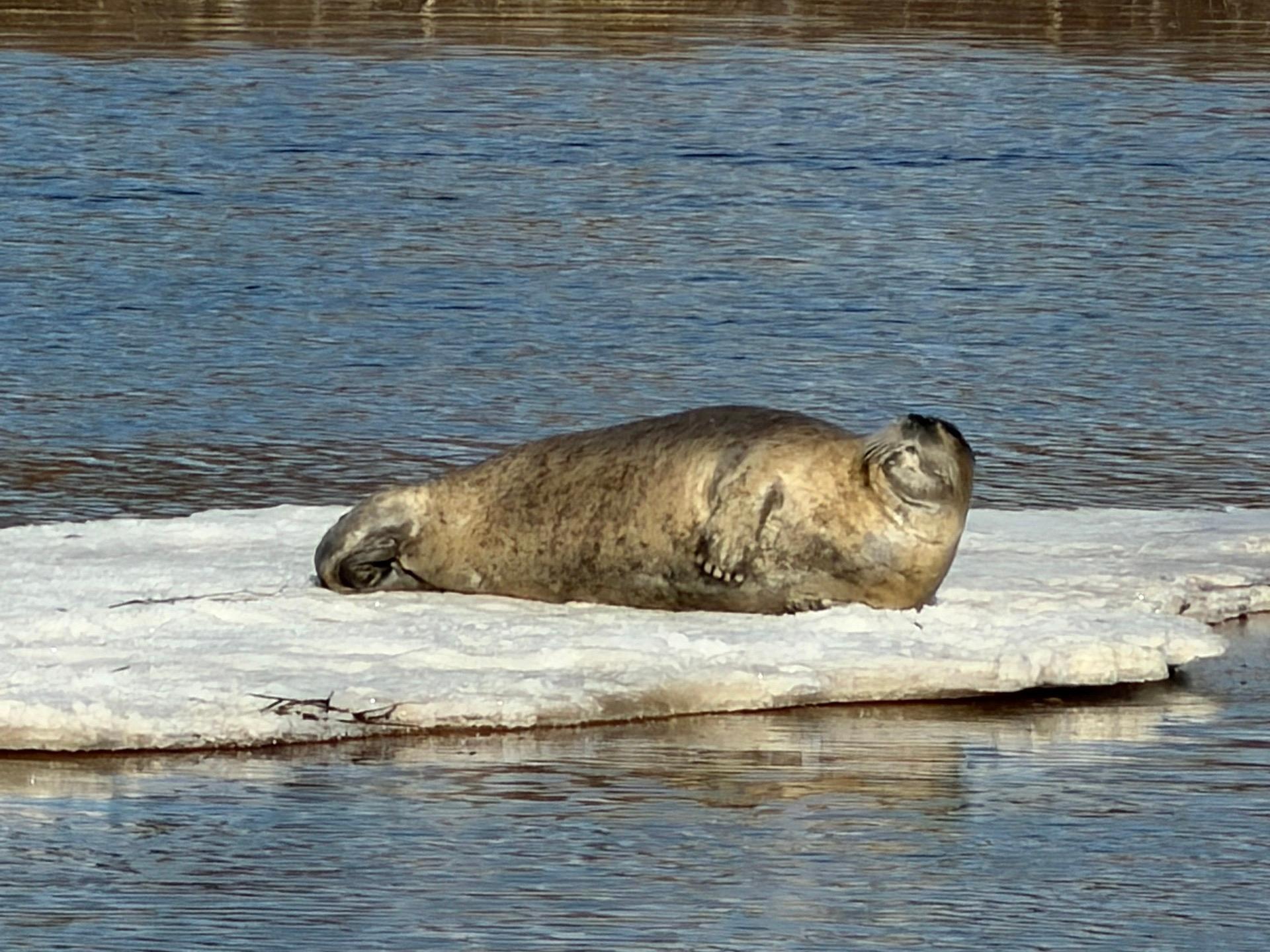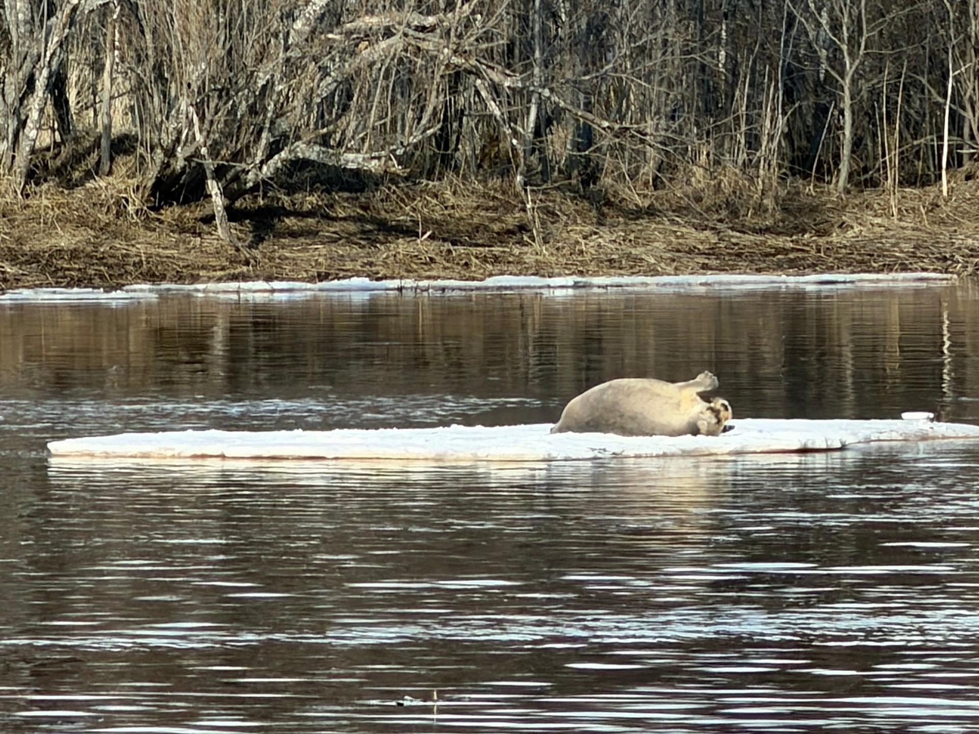 «Апрель — это время, когда у нас на любой речке можно встретить усатого друга, который лежит на льдине, греется на солнышке и тоже рад весне, как и люди», — поделилась впечатлениями северянка.