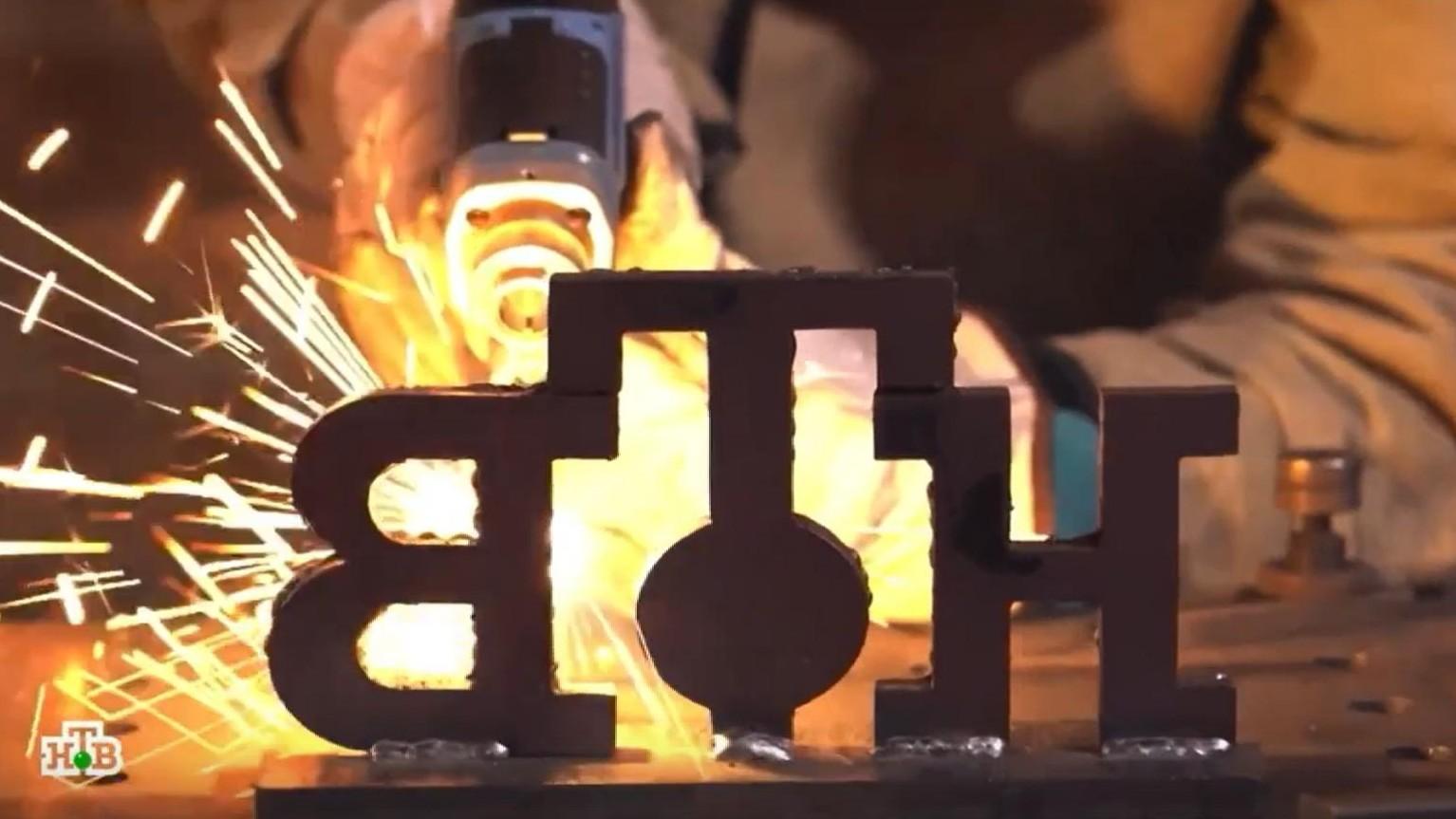 Процесс создания металлических букв для логотипа телеканала НТВ.