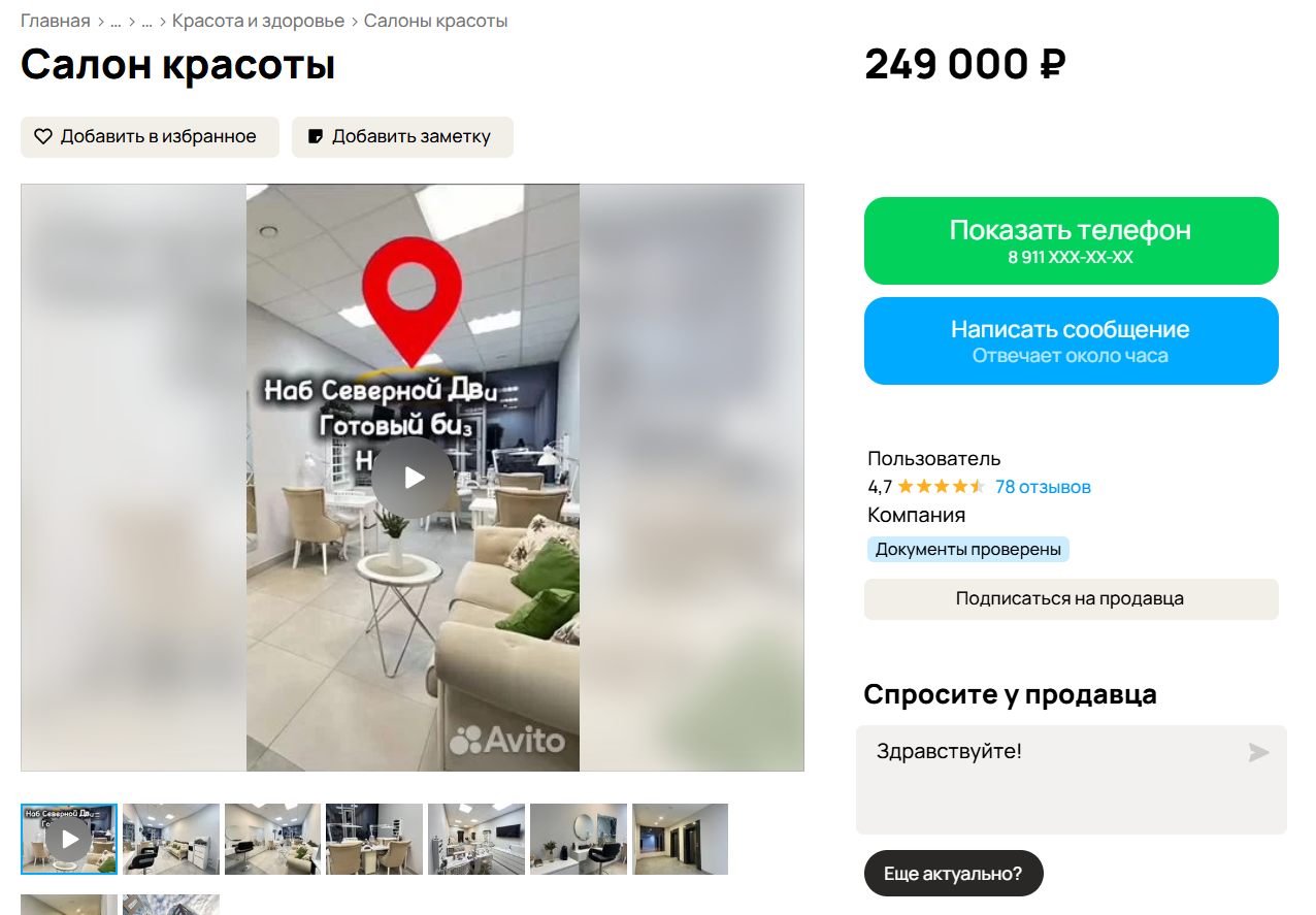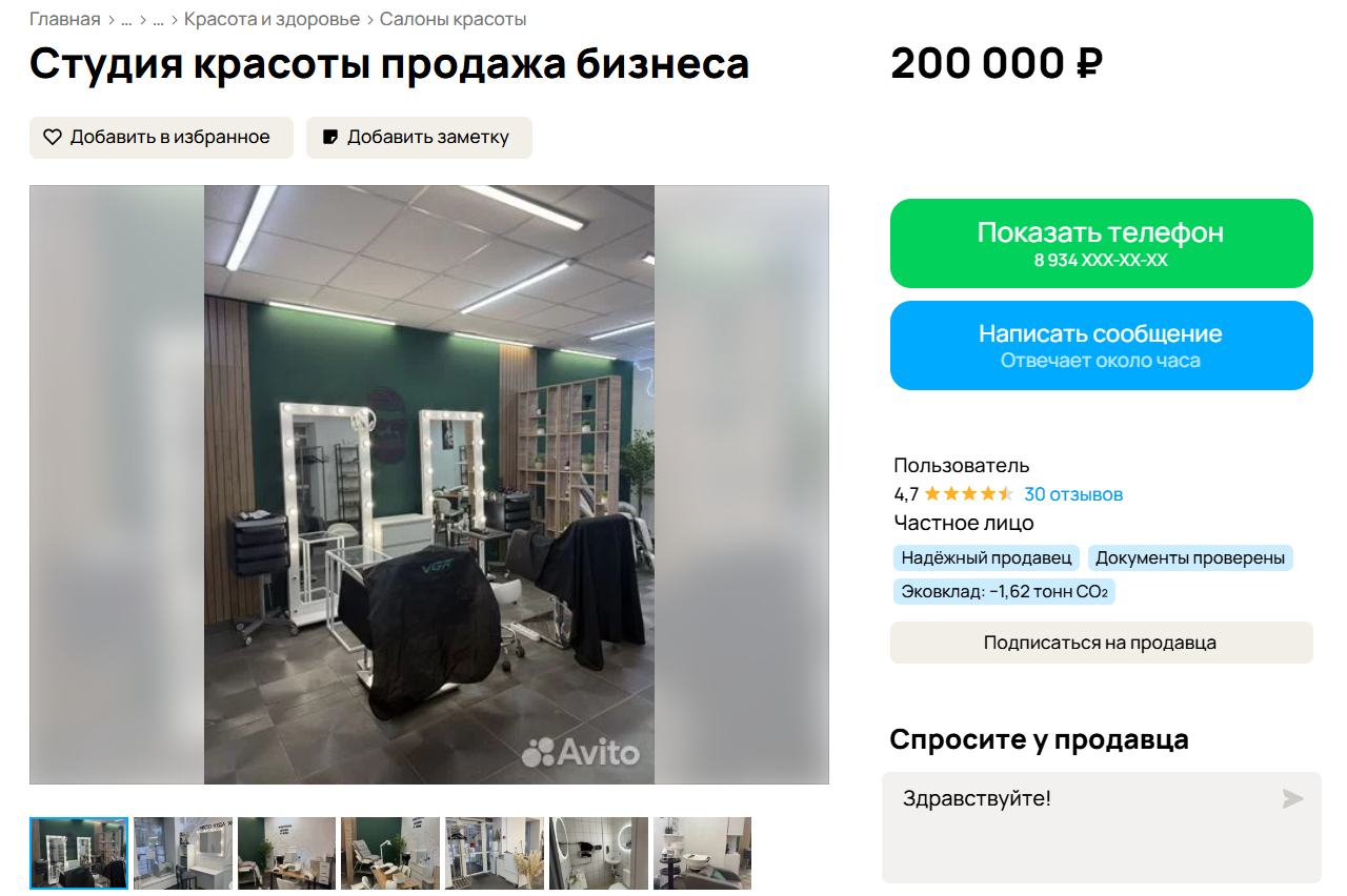 На площадке Avito размещены объявления о продаже пяти салонов красоты в Архангельске.