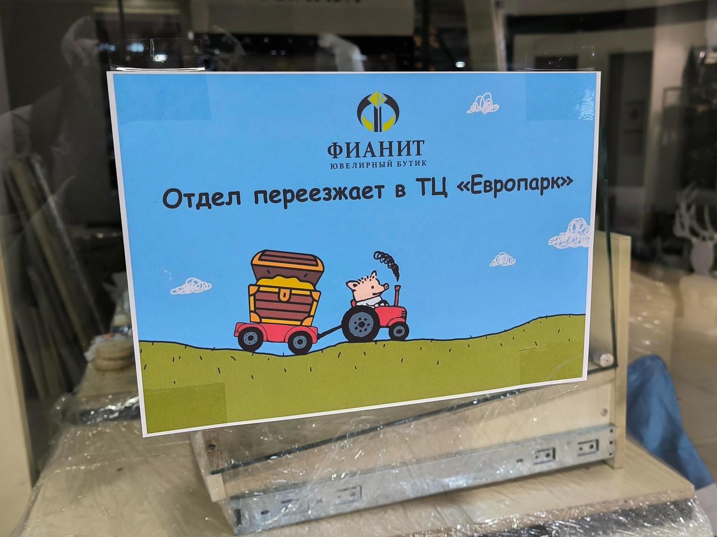 Согласно дополнительной информации, размещенной рядом, точка не прекращает деятельность полностью. Она переезжает в соседний торгово-развлекательный комплекс «Европарк».