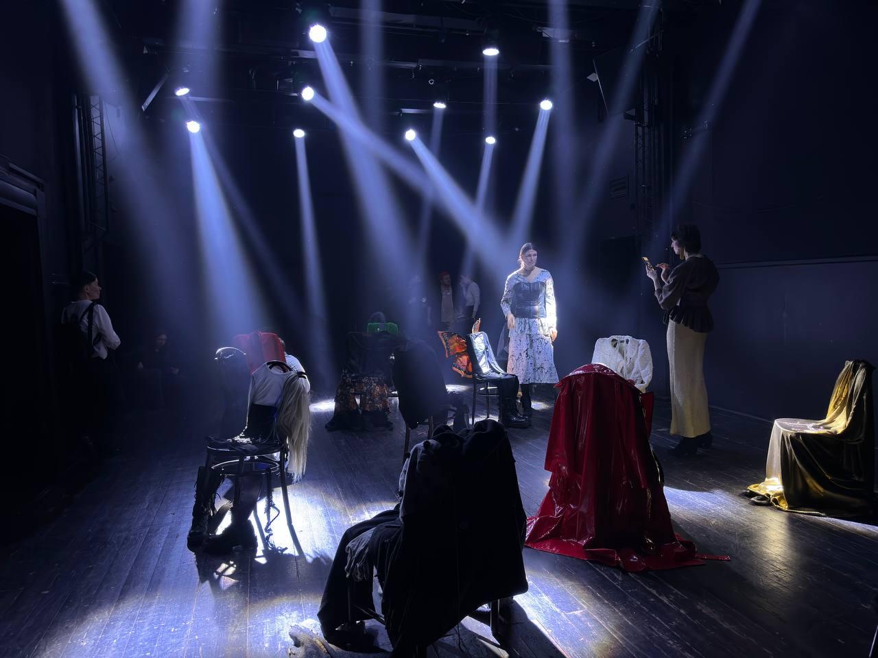 Актеры театра Панова выступили в качестве моделей на показе, представив коллекцию по мотивам сценических костюмов.
