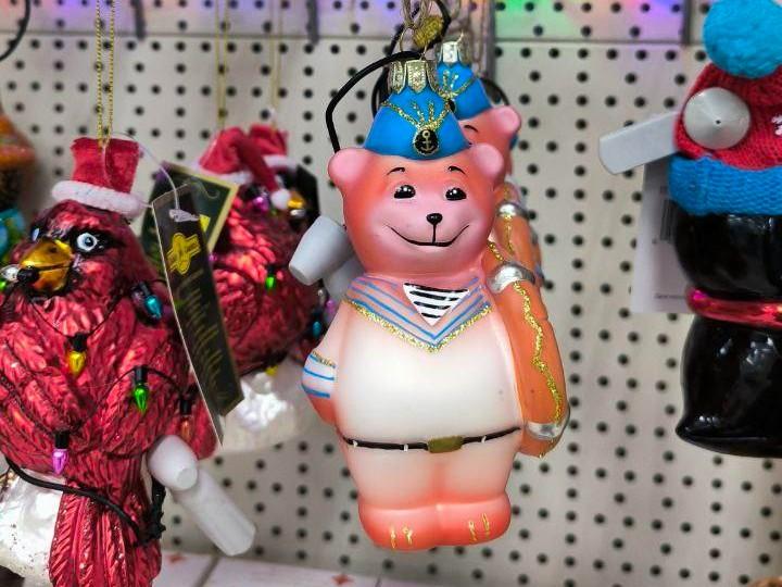 В магазинах города представлены стеклянные украшения, стилизованные под советские образцы. Некоторые игрушки настолько трогательны, что вызывают желание их пожалеть.