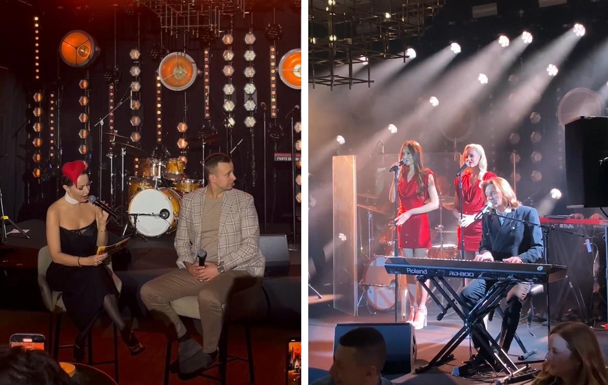 Ксения Собчак и Дмитрий Маликов во время выступления на мероприятии.