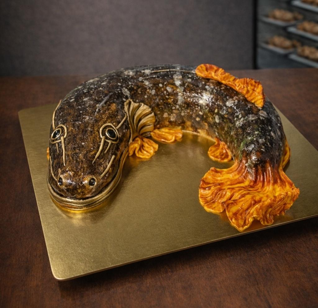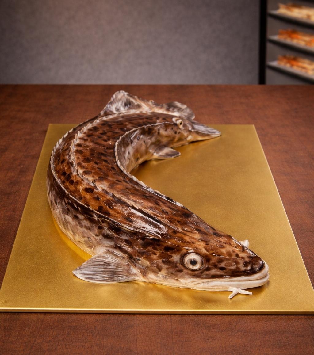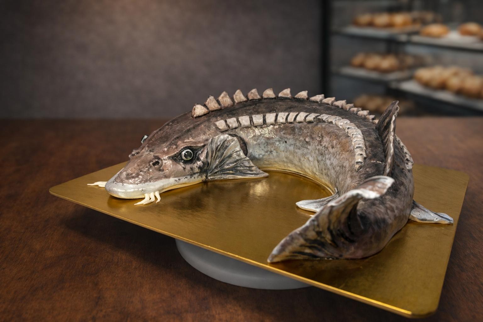 Торт в виде стерляди выглядит как живая рыба