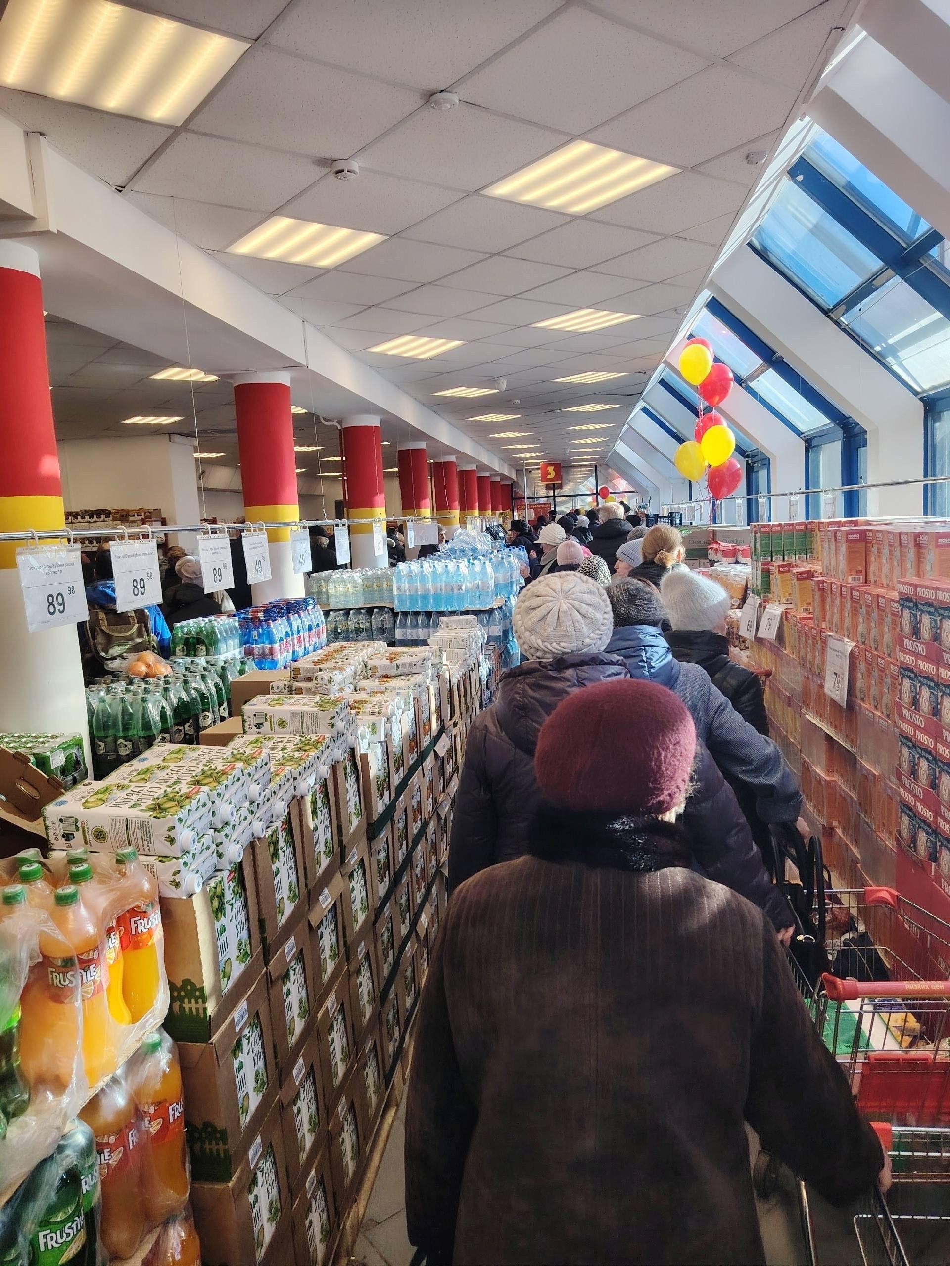 Одна из местных жительниц поделилась в сети фотографиями и описала ситуацию: «Сегодня пошли гулять с собакой, очередь стояла с 08:00, а открытие в 09:00. Все ждали курицу за 99 рублей. Кто успел, тот и взял. В 09:10 ее уже не осталось. Возмущению не было предела: люди начали перерывать холодильники, где ценник висел, требовать, чуть ли не у других отбирать — у тех, кто взял по три штуки. Вроде как женщину затоптали».