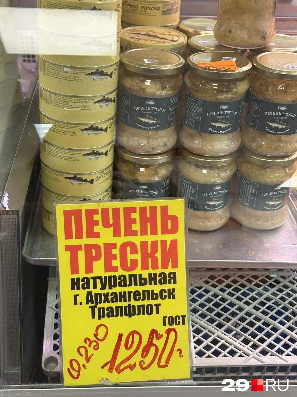 На новой торговой площадке в здании ТЦ «Прага», куда переехали продавцы с рынка, печень трески от Архангельского тралового флота продают за 1250 рублей.