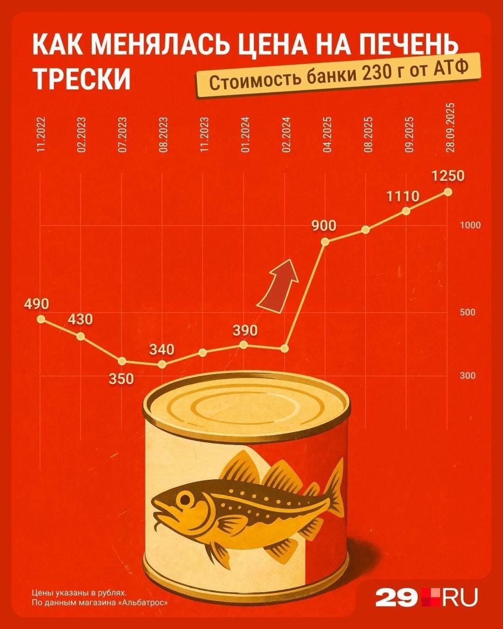 Динамику изменения цен на одну банку печени от АТФ иллюстрирует инфографика.