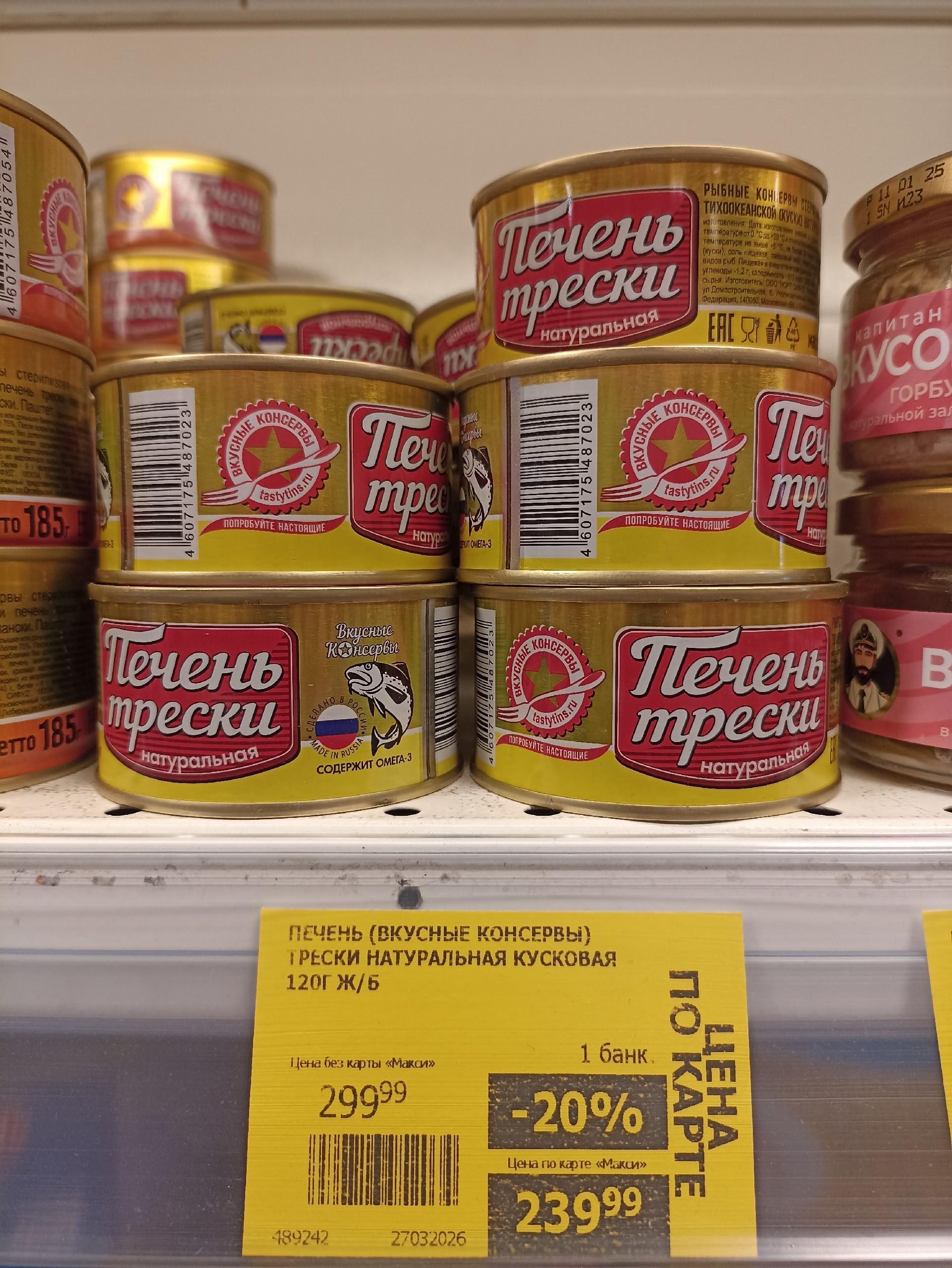 В других торговых сетях, например в «Макси», предлагается печень трески от иных производителей по цене 240 рублей за банку.