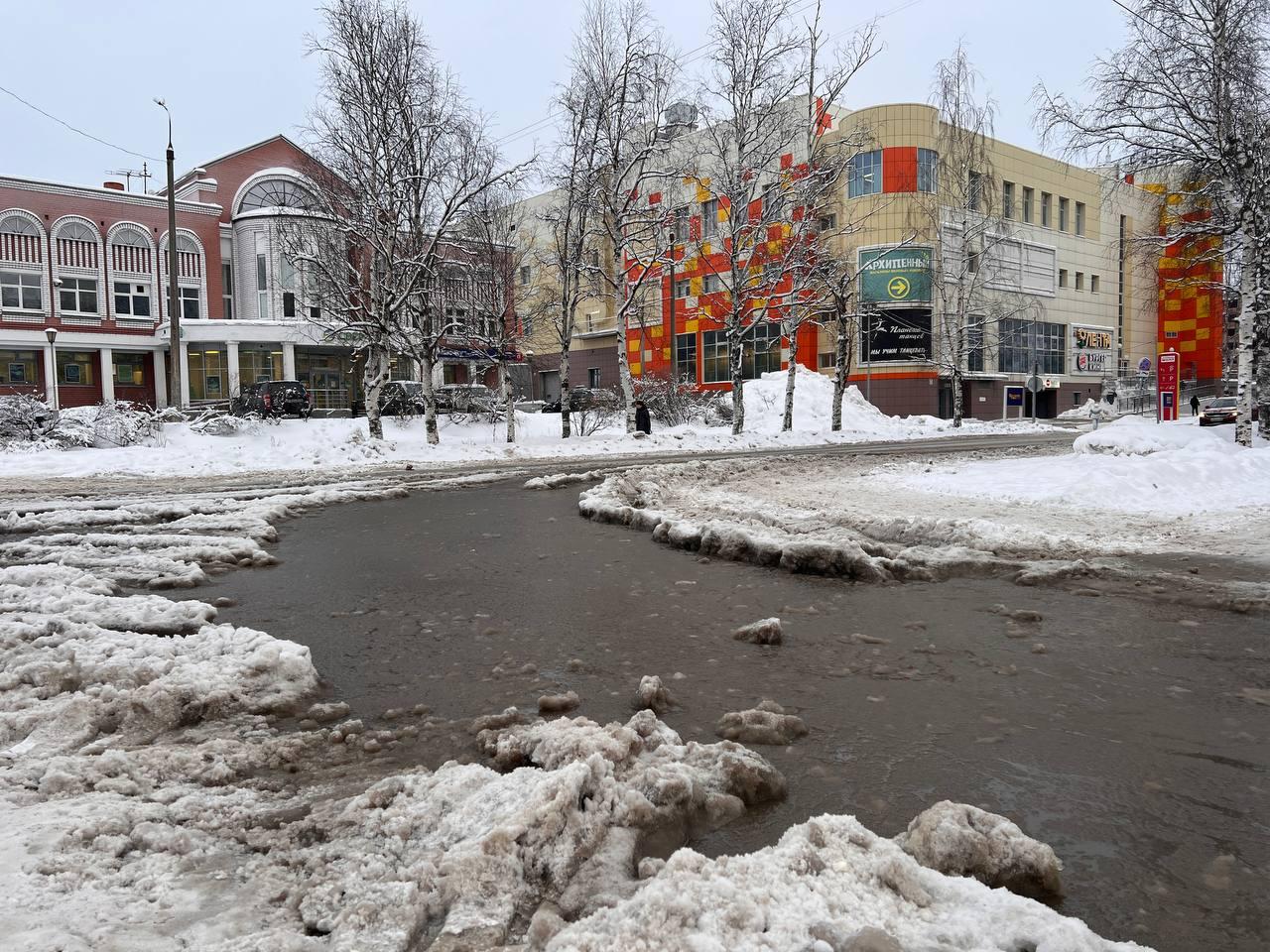 Архангельск страдает от луж и гололеда