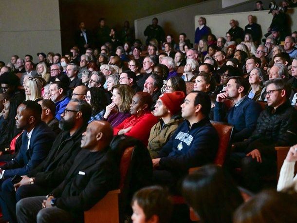 Как сообщают СМИ, новые фотографии с мероприятия показывают, что зрители были в основном белыми, что ставит под сомнение обвинения в расистском подтексте его слов.