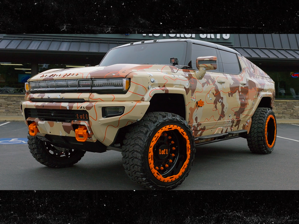 Hummer был customized ателье Dreamworks Motorsports. Автомобиль выделяется камуфляжной оклейкой, оранжевым кожаным салоном, уникальными дисками и светодиодной подсветкой.