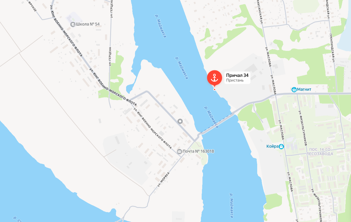 Расположение причала показано на карте Архангельска