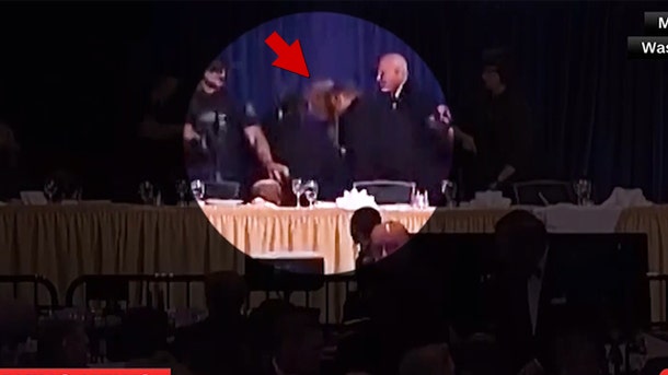 До происшествия мероприятие шло по плану: президент Ассоциации корреспондентов Белого дома Вэйцзя Цзян произнесла приветственную речь и пригласила всех к столу.