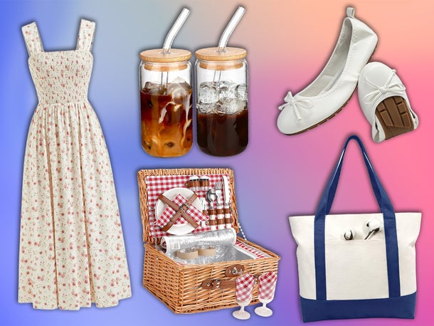Наденьте наряд и отправьтесь на свидание с собой. Будь то ужин в любимом ресторане или посещение музея, платье с цветочным принтом и присборенным лифом будет комфортно и лестно сидеть. Дополните образ складными балетками, доступными в разных цветах, и холщовой сумкой-тоут, которую можно украсить нашивками и брелоками.