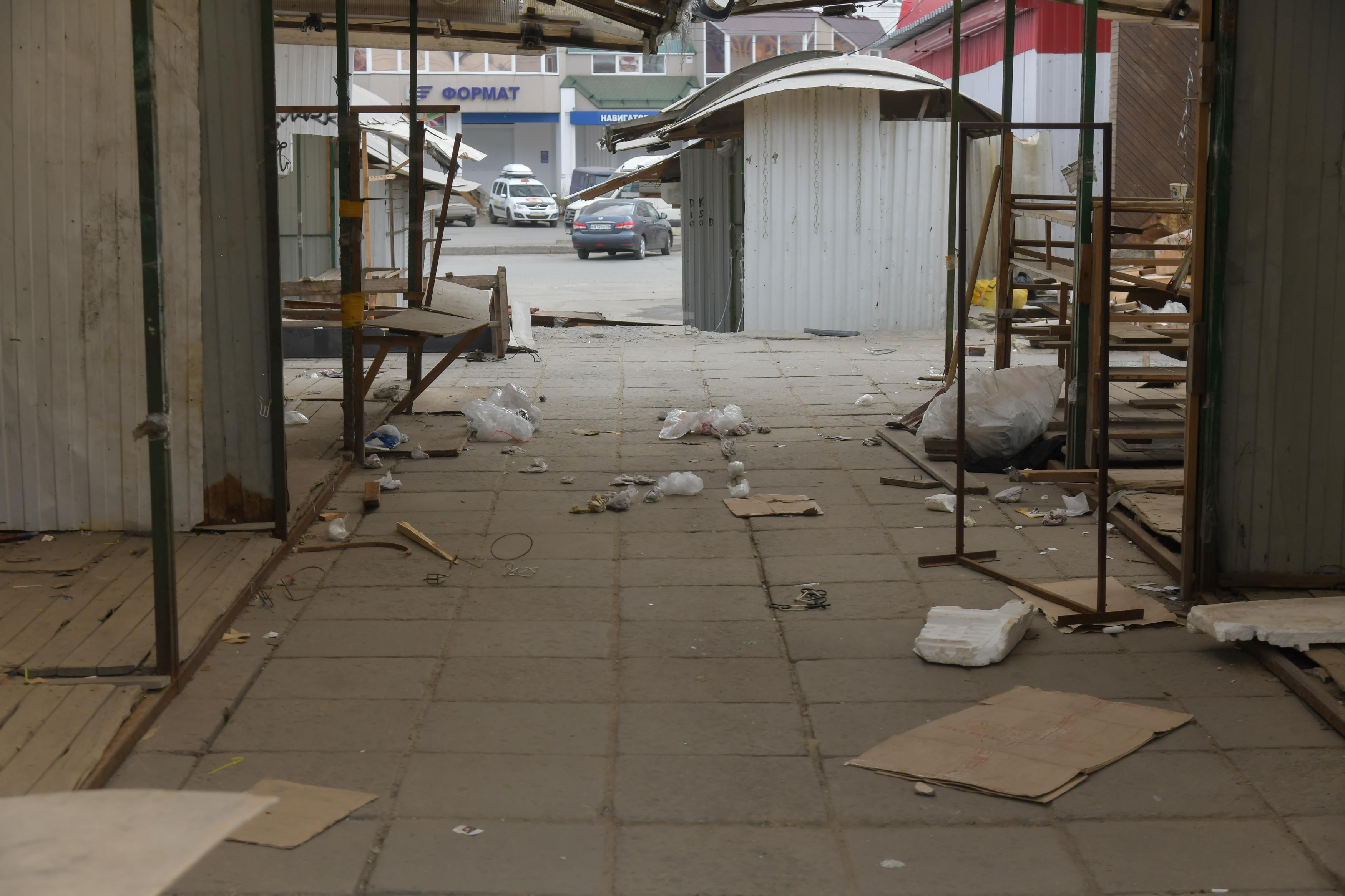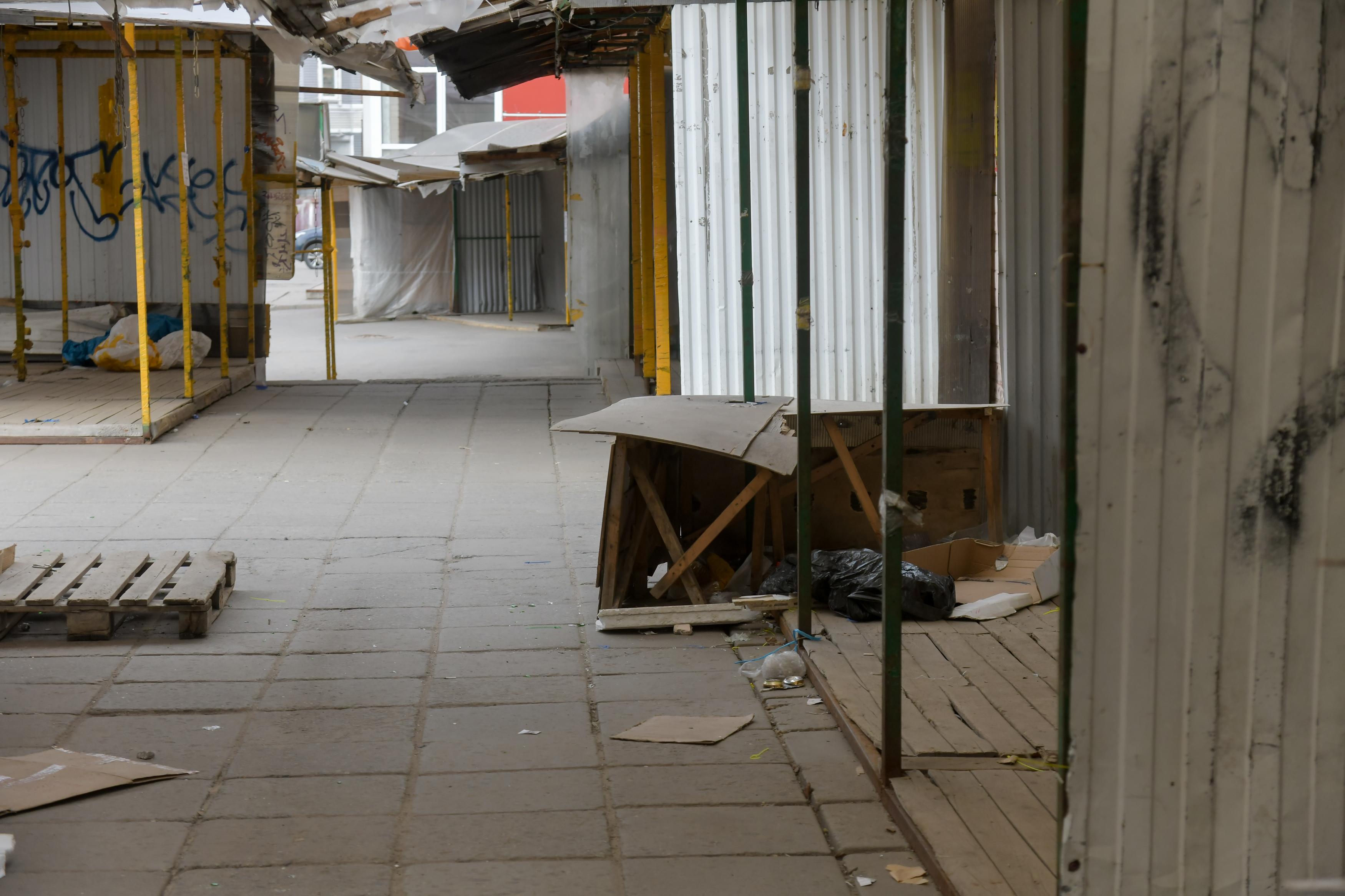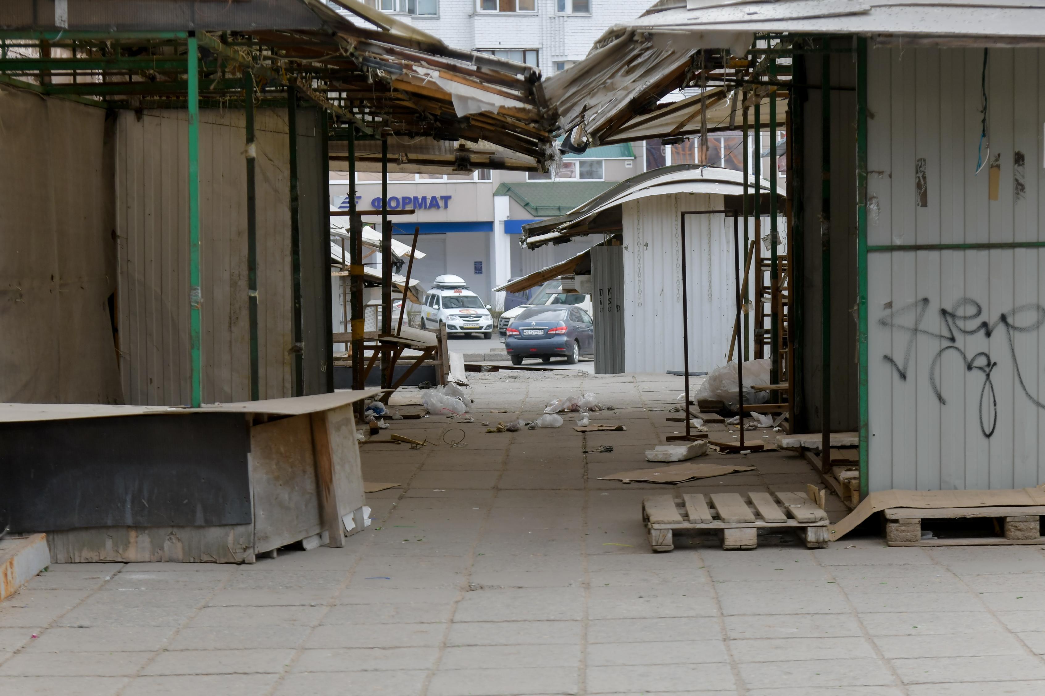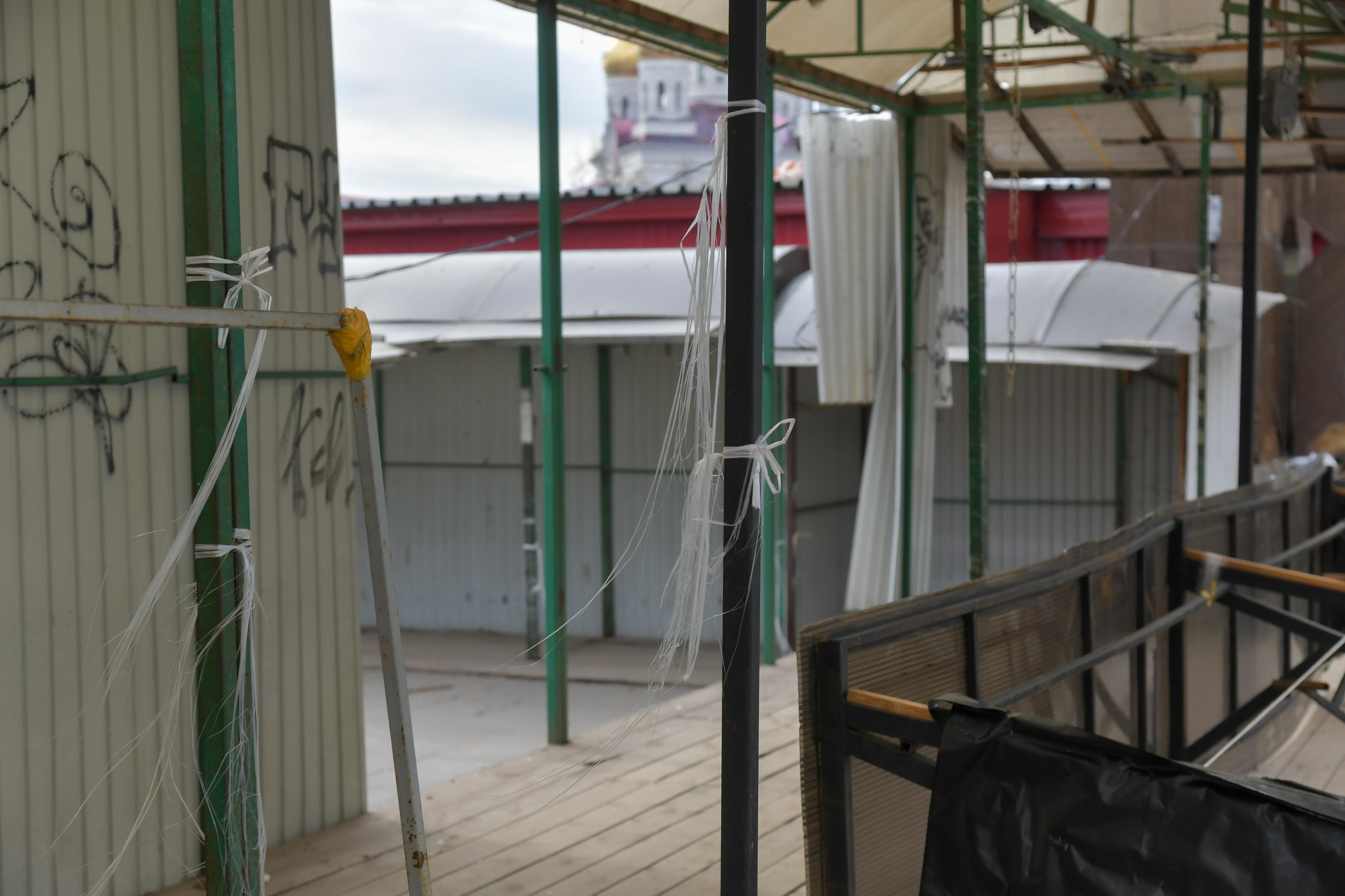 После закрытия Центрального рынка продавцы перебрались в торговый центр «Прага». Участок вокруг пустующего здания теперь кажется безлюдным и запущенным.