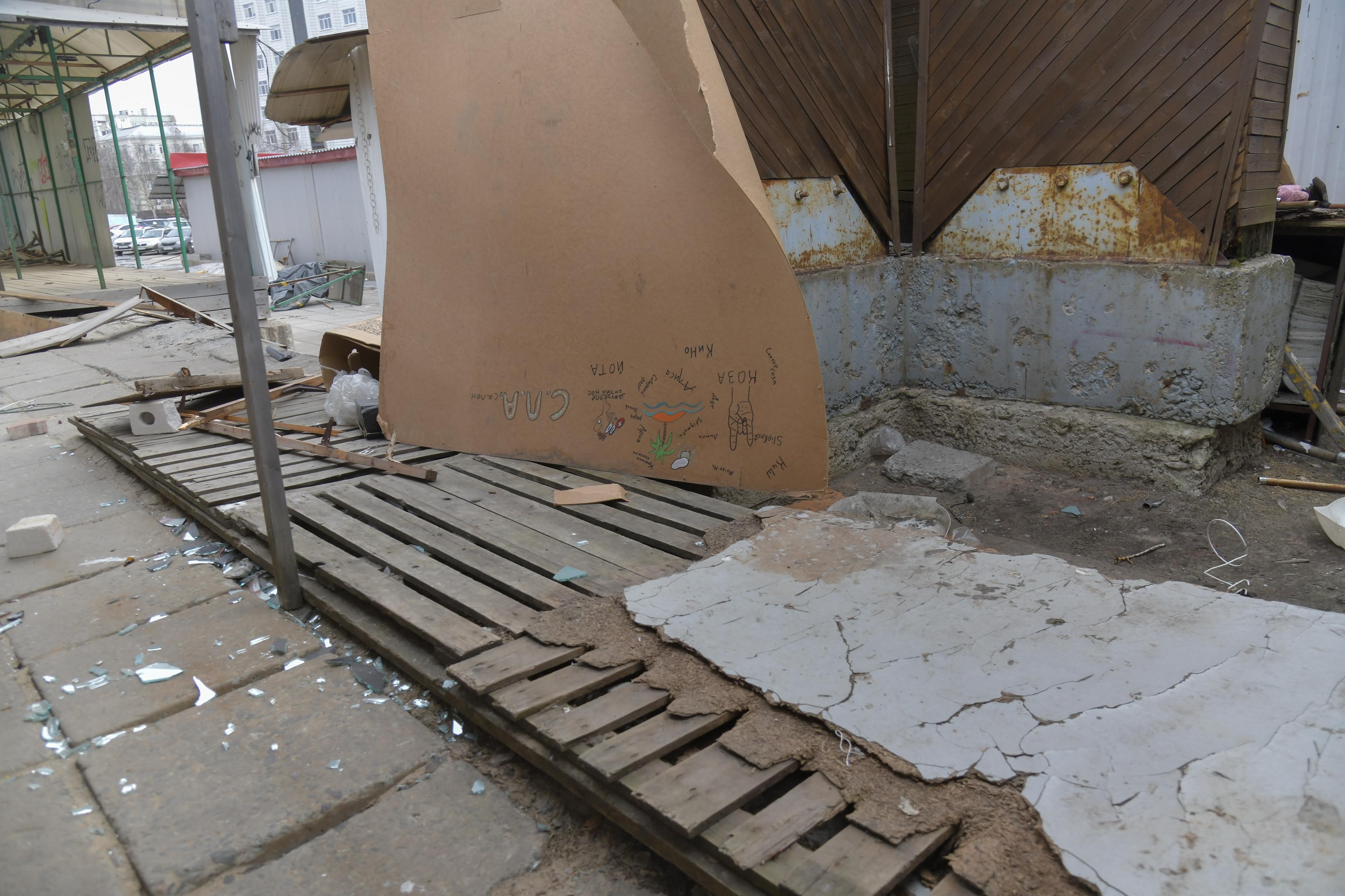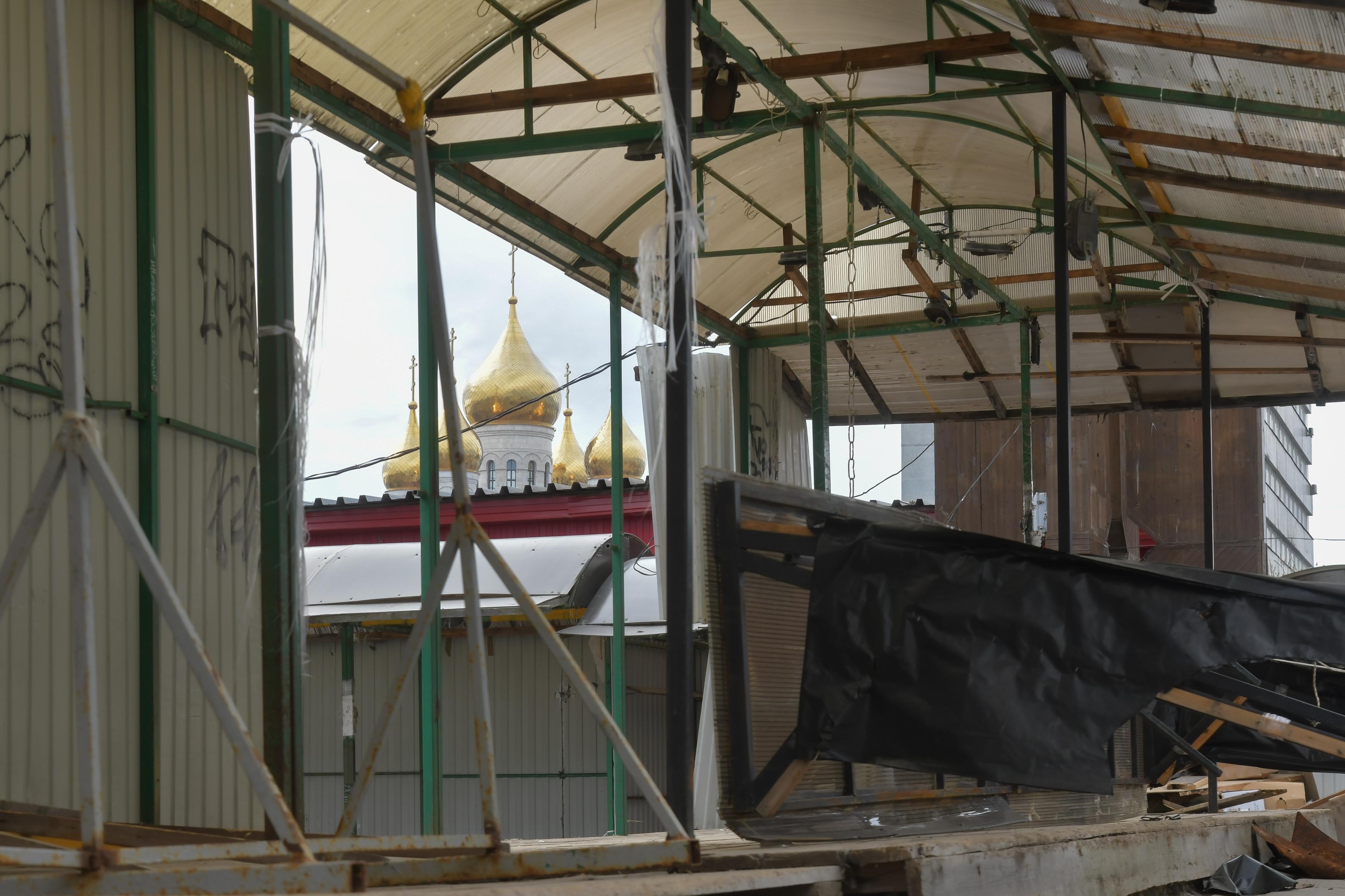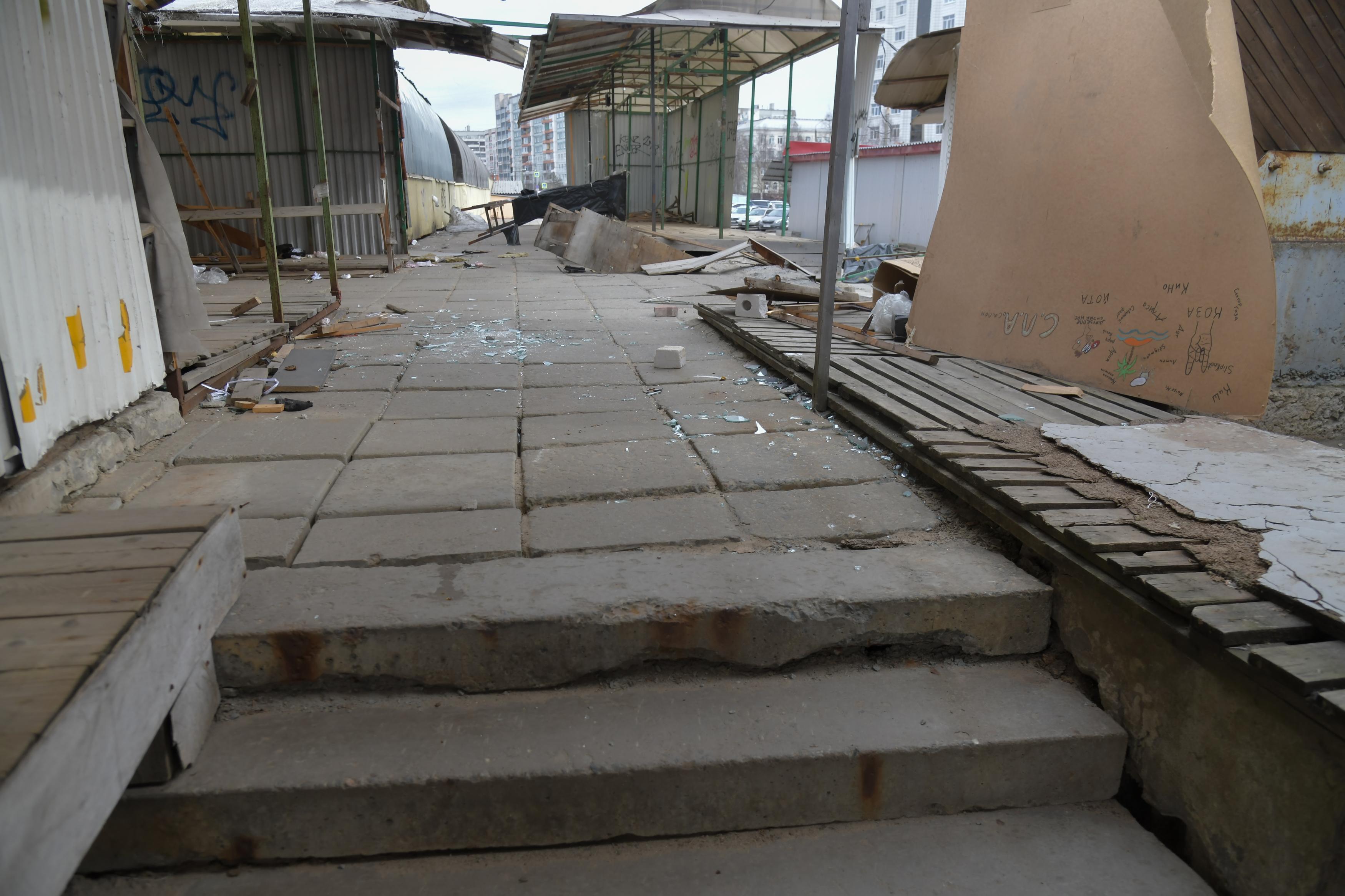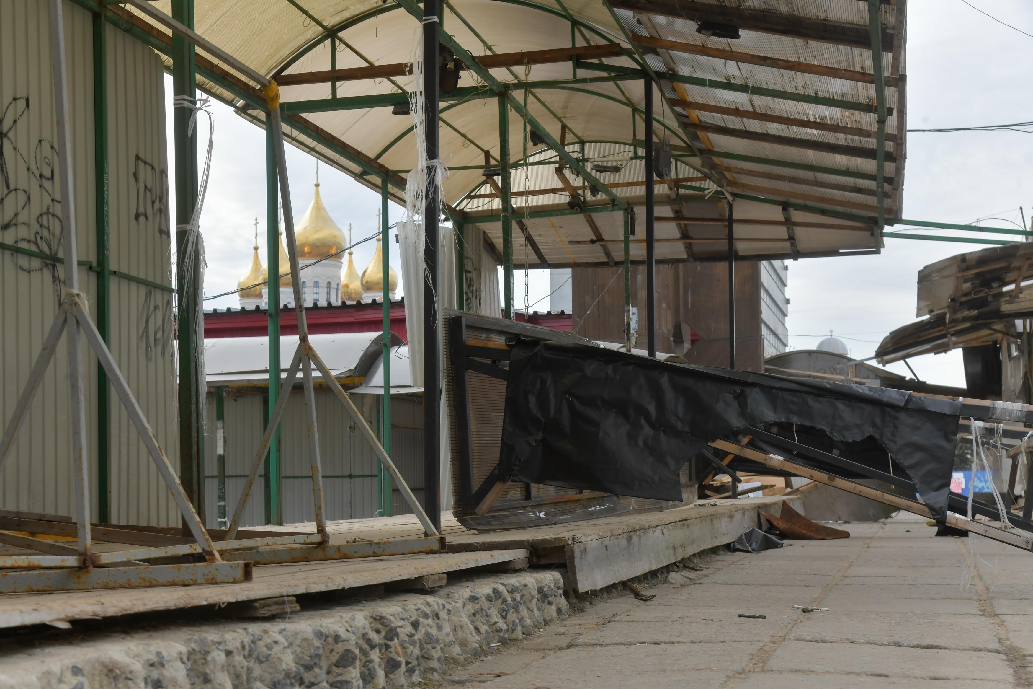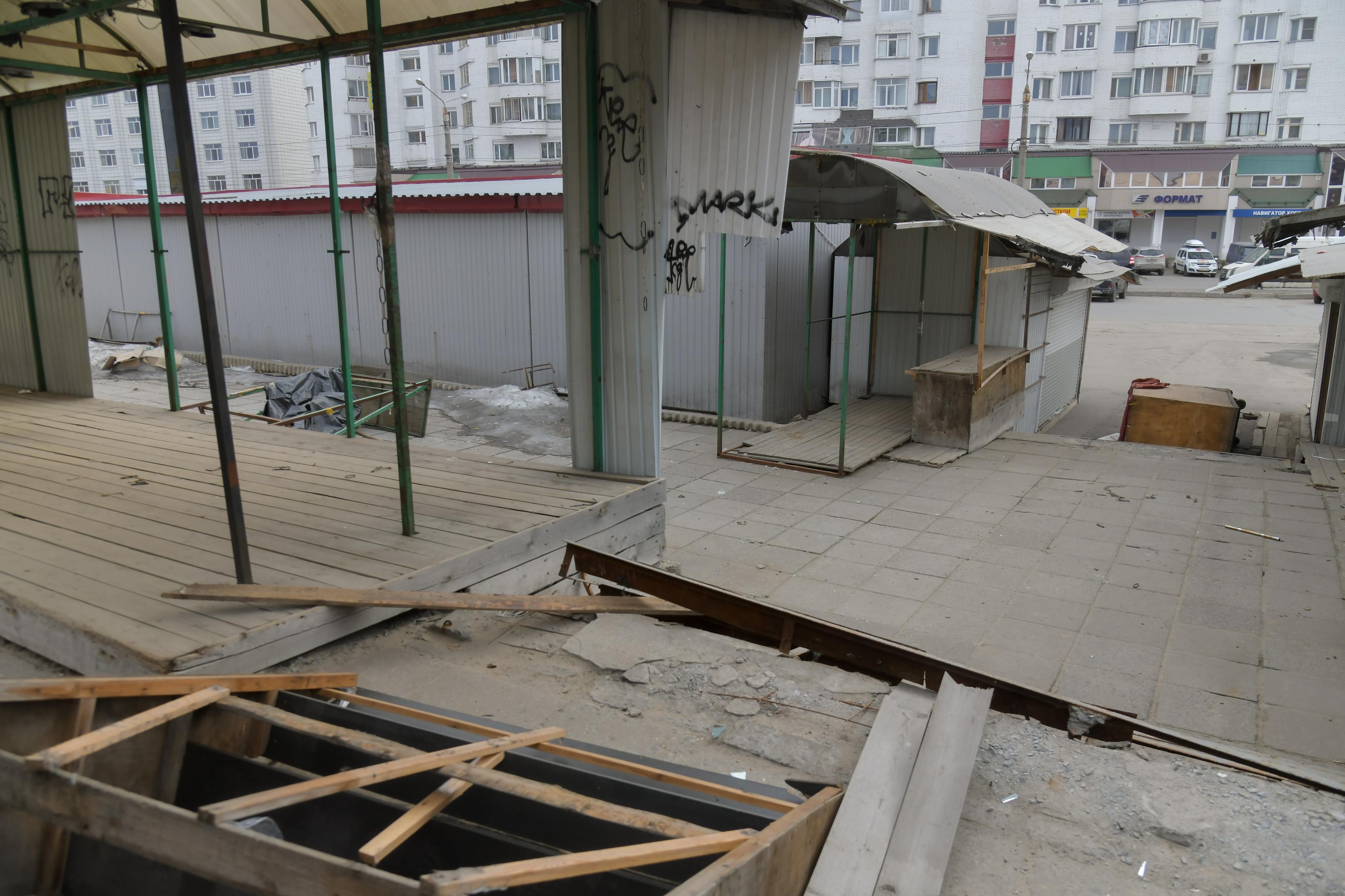 После закрытия Центрального рынка продавцы перебрались в торговый центр «Прага». Участок вокруг пустующего здания теперь кажется безлюдным и запущенным.