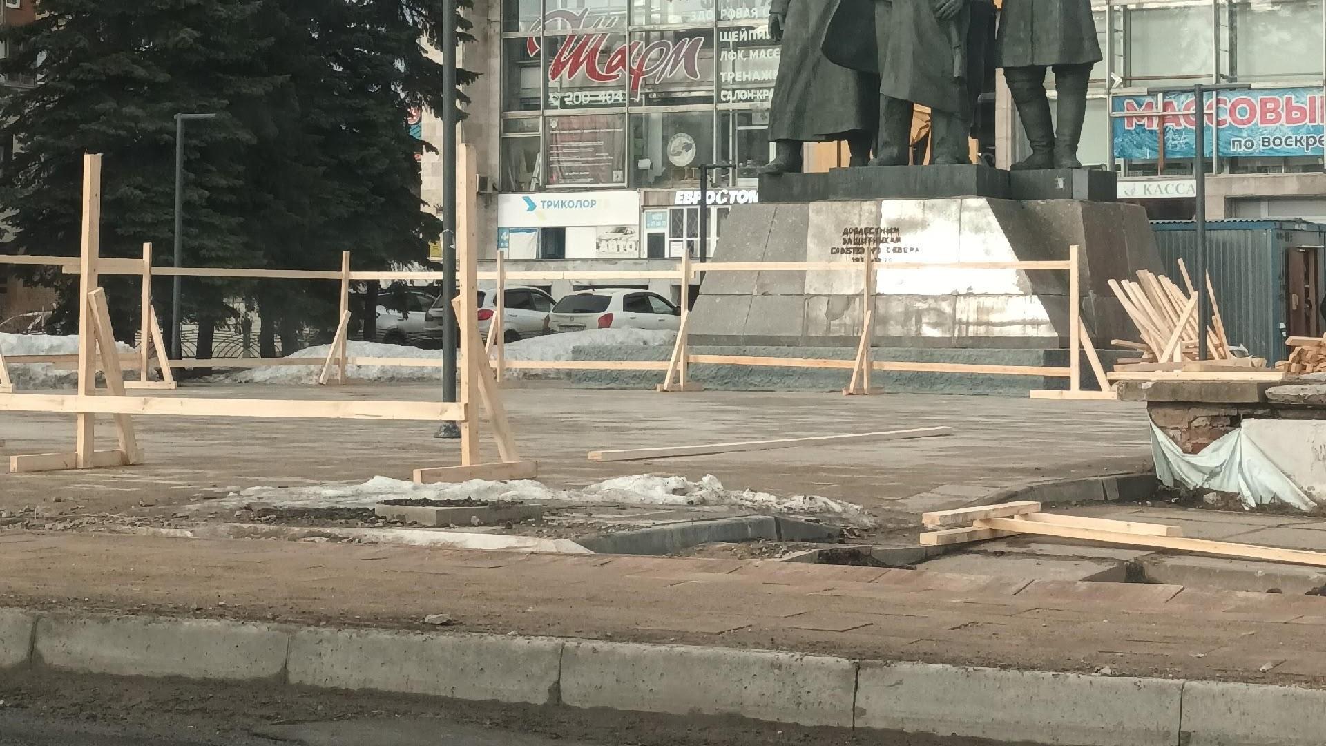 В Архангельске у Дворца спорта устанавливают забор для фонтана