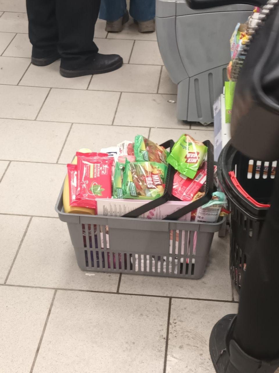 В корзинах и пакетах у покупателей можно увидеть всё подряд: орехи, сладости, средства гигиены, кондиционеры для белья — часто по несколько штук сразу, а также контейнеры для еды и памперсы. Молодёжь активно скупает чипсы и газированные напитки.