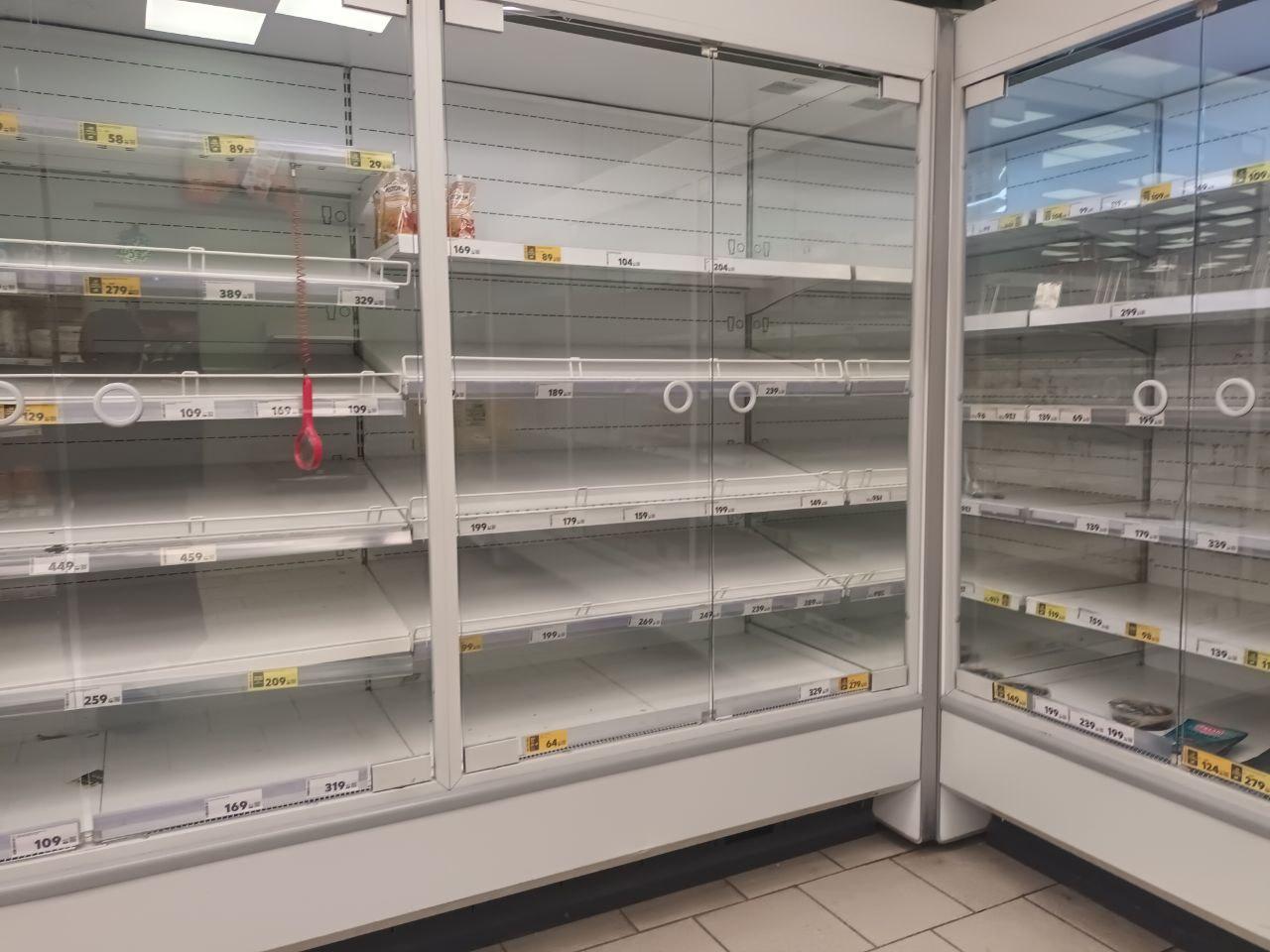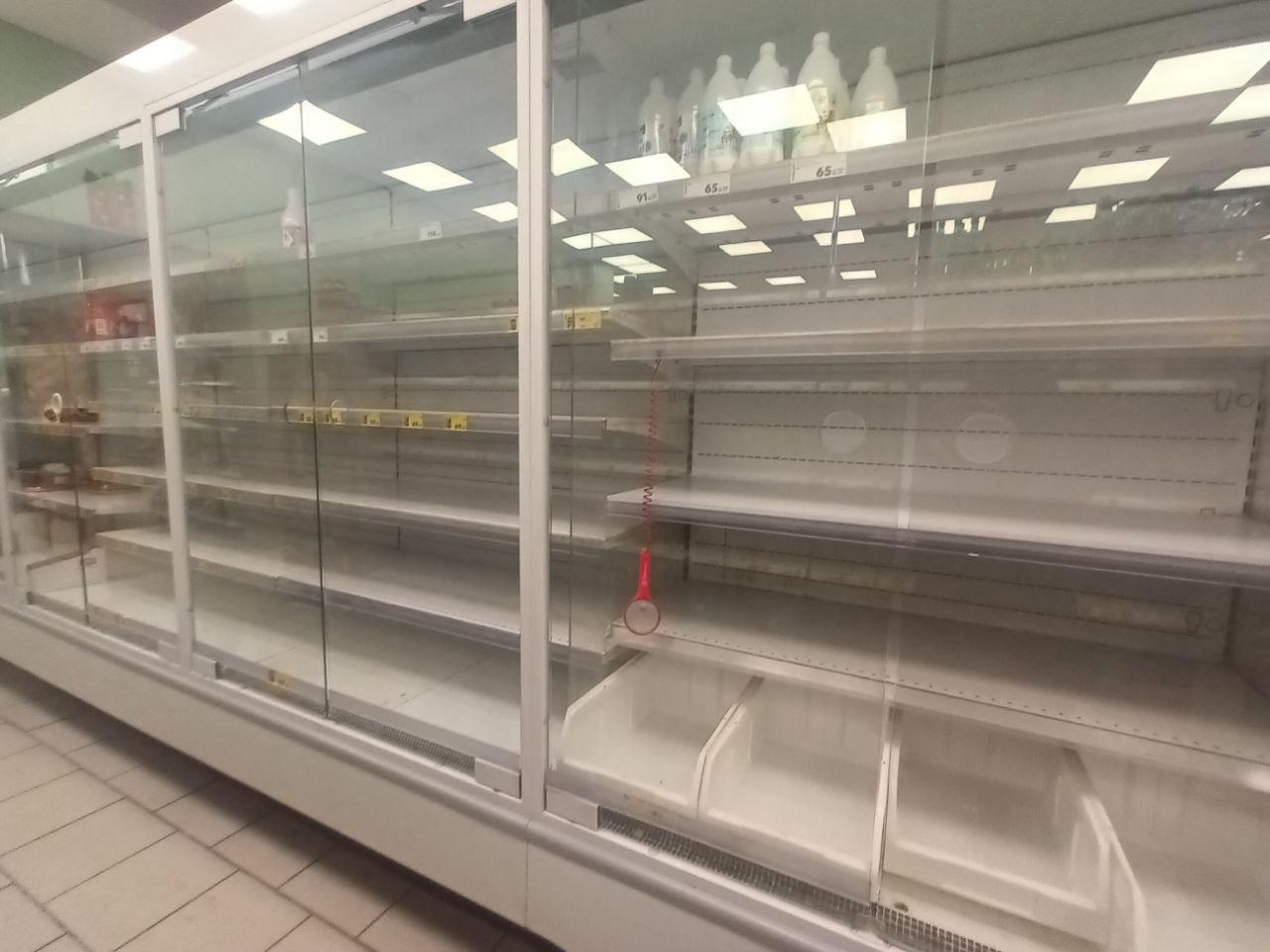 В целом люди ведут себя довольно вежливо, даже общаются между собой. Однако неизвестно, как было раньше: на одном из почти пустых холодильников к вечеру отсутствуют стеклянные двери.