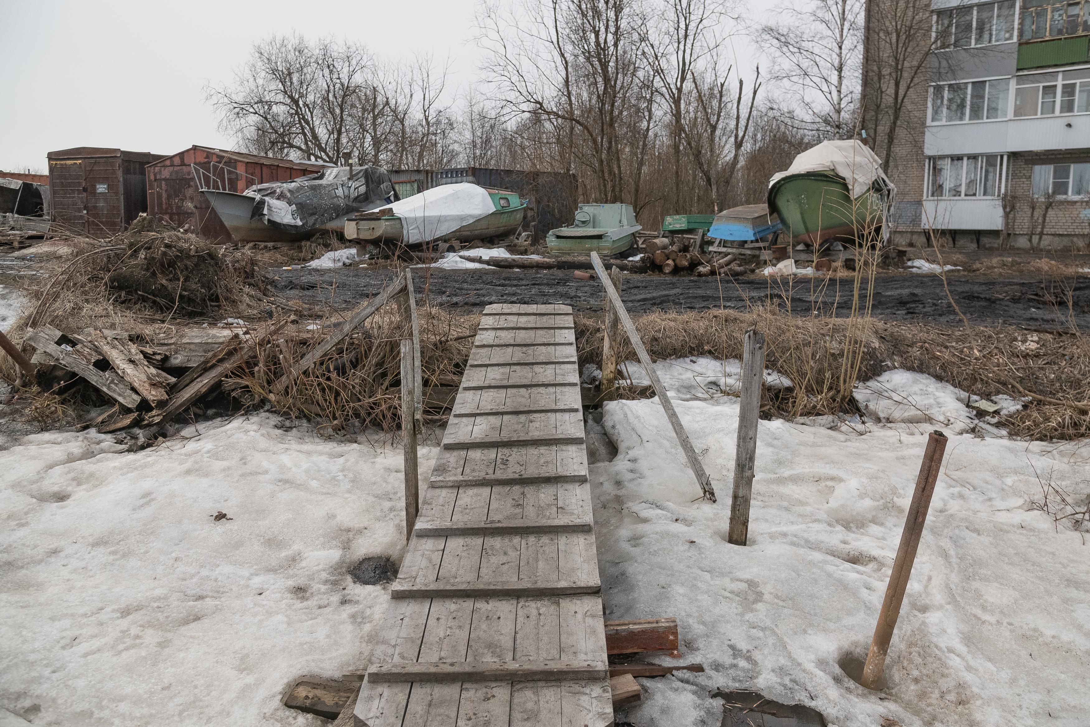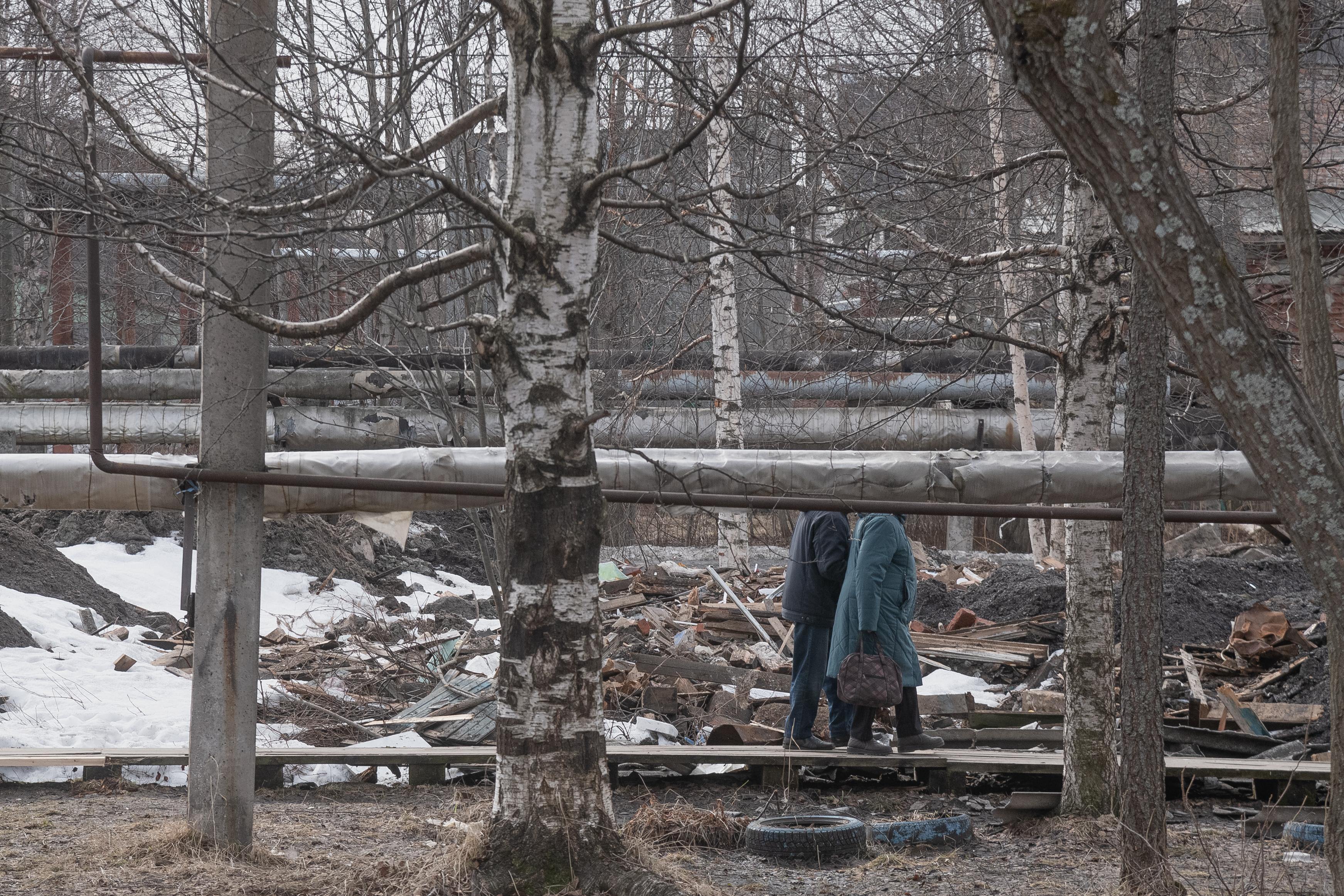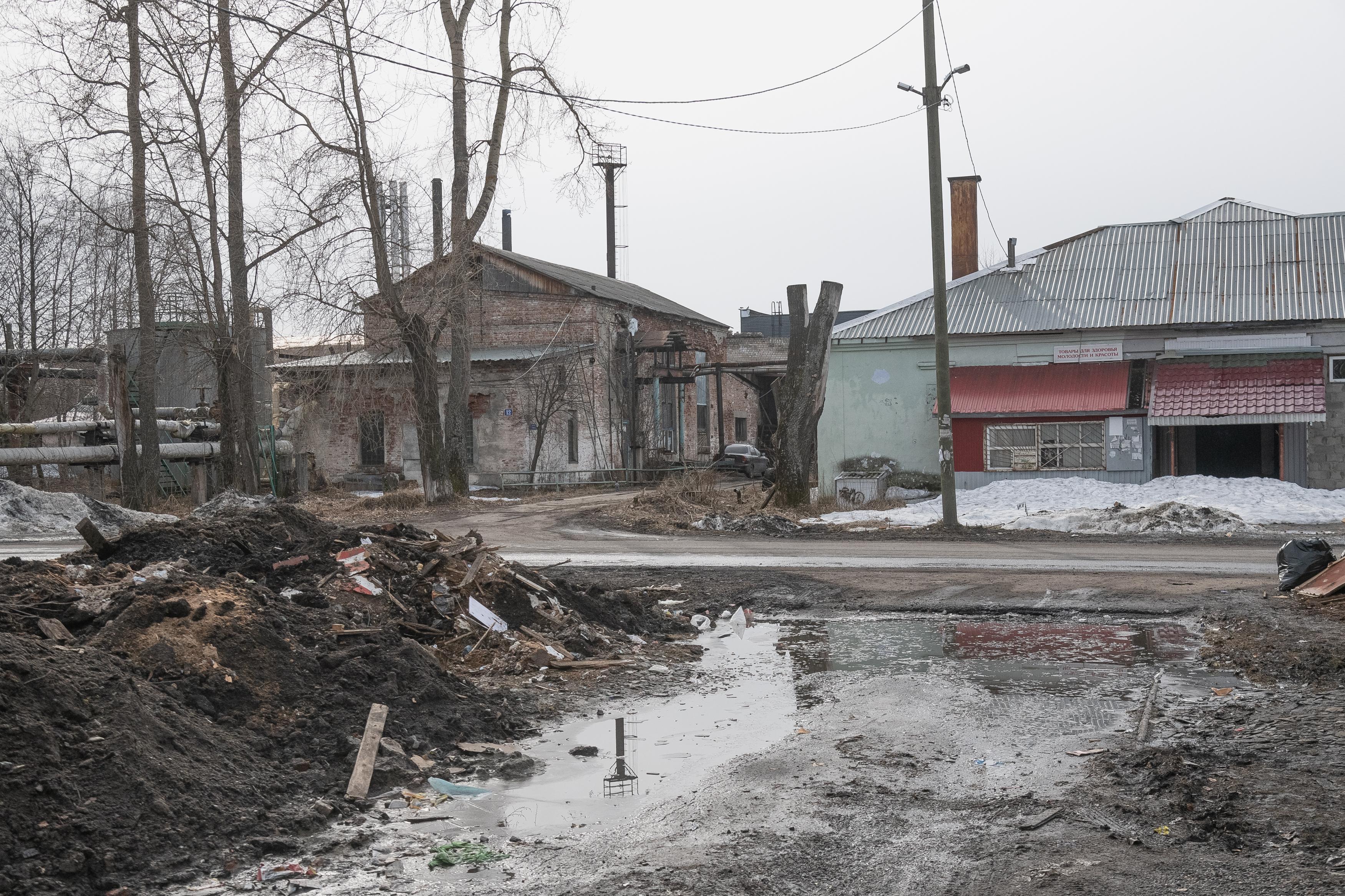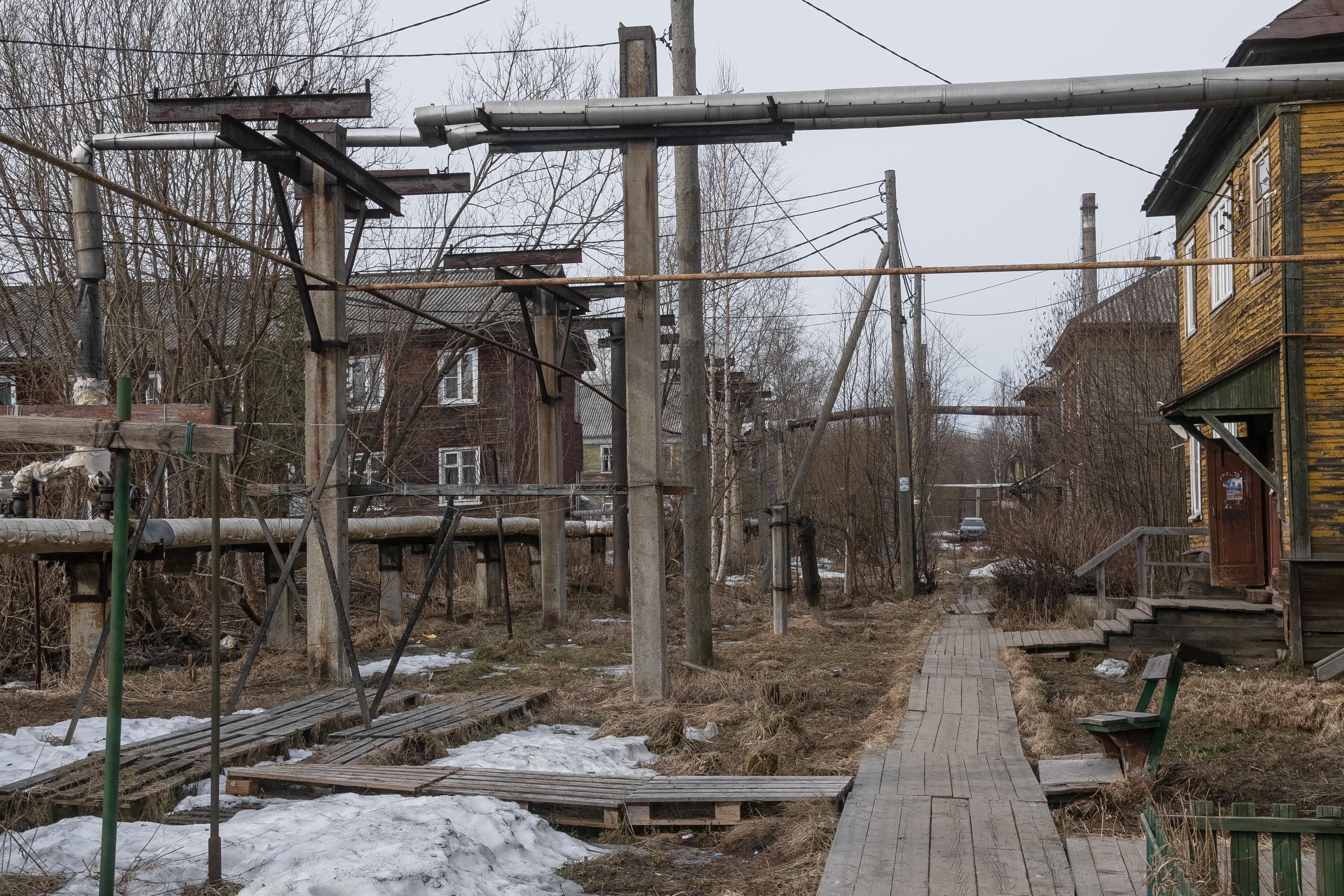Над поселком возвышаются корпуса заброшенного гидролизного завода, который работал с 1941 по 2001 год. «Здесь хорошо было, пока завод работал. А сейчас ничего хорошего. Разруха. Проблему с подтоплениями решить уже много лет не могут», — рассказывает Александра Ивановна, прожившая здесь полвека.