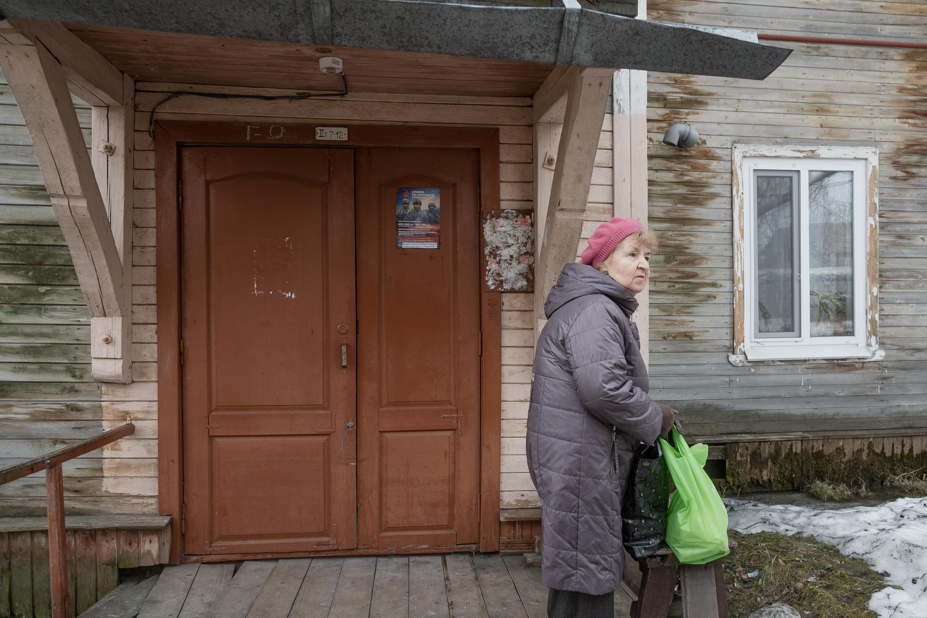На многих дверях можно увидеть объявления о наборе в Вооруженные Силы РФ.
