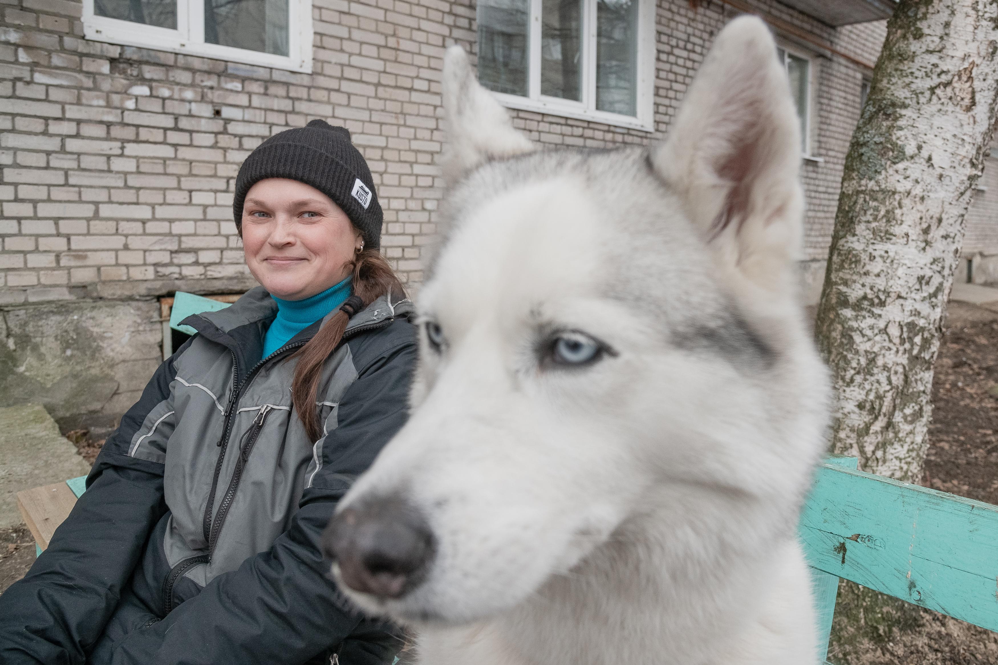 Мария гуляет со своей собакой по имени Майя.