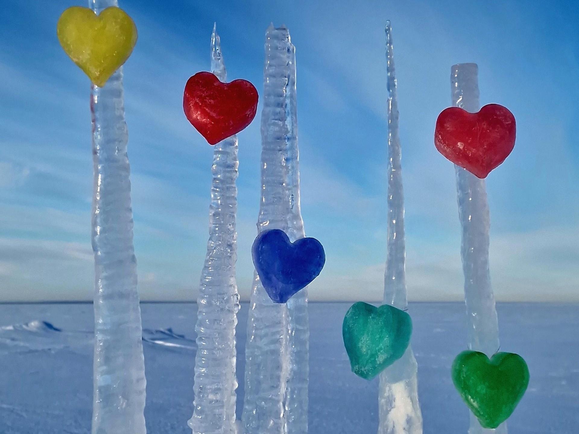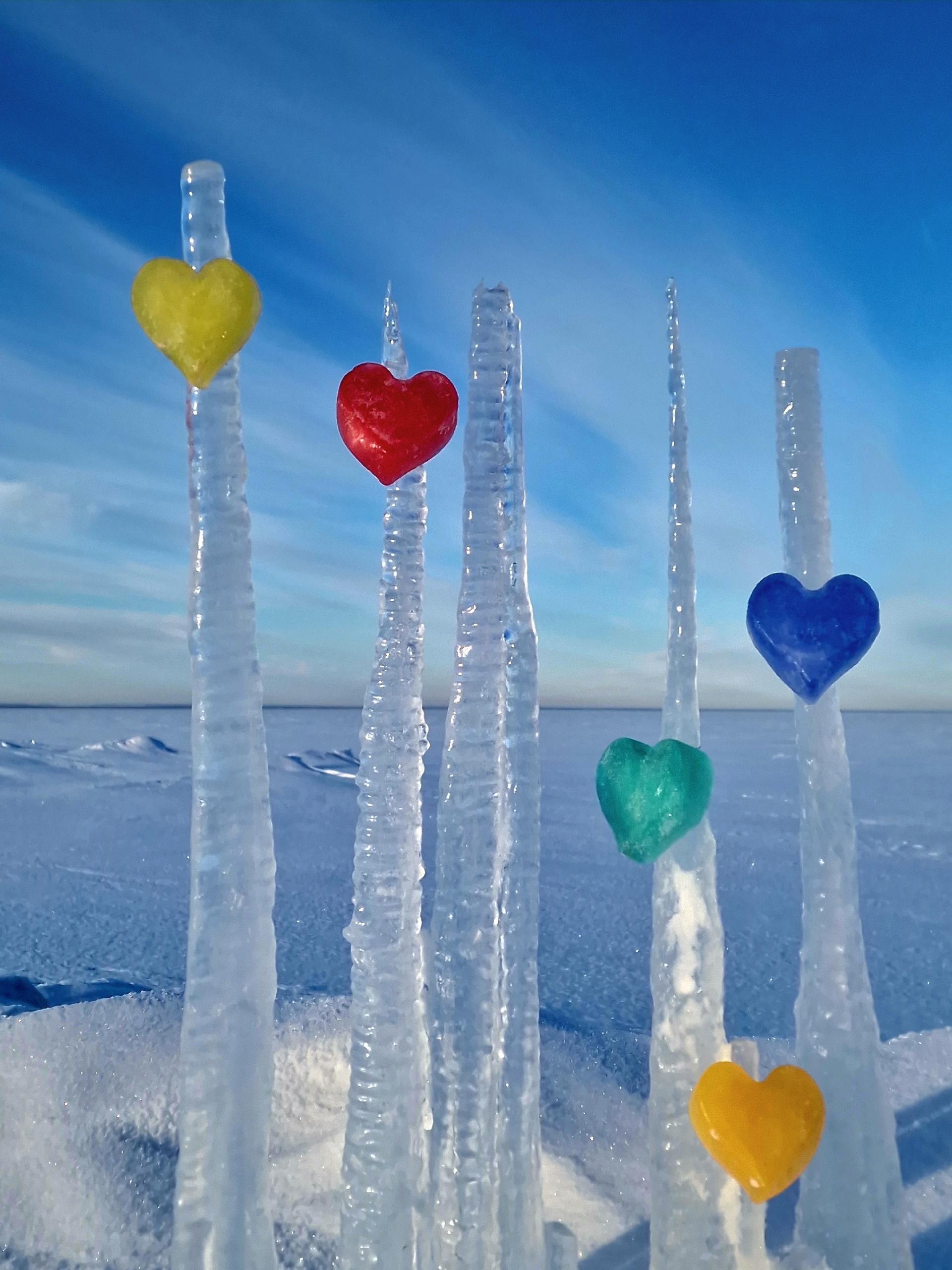 Цветные льдинки добавляют яркие акценты в зимний пейзаж