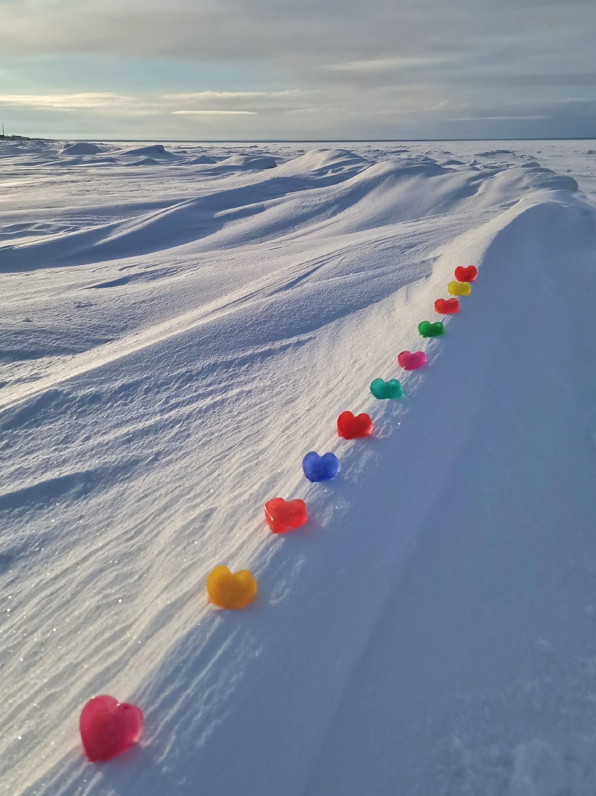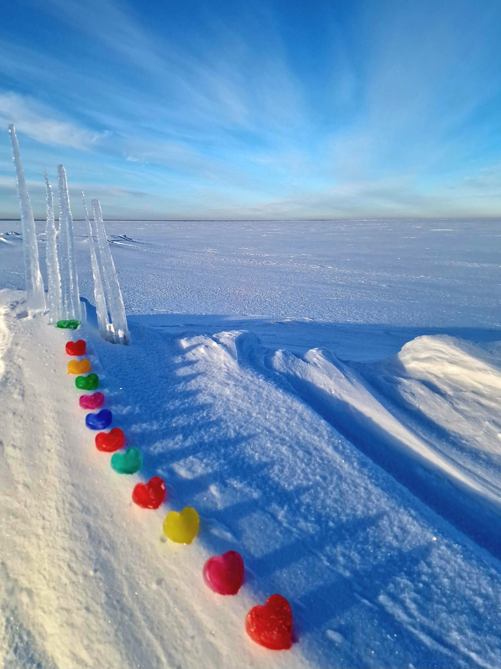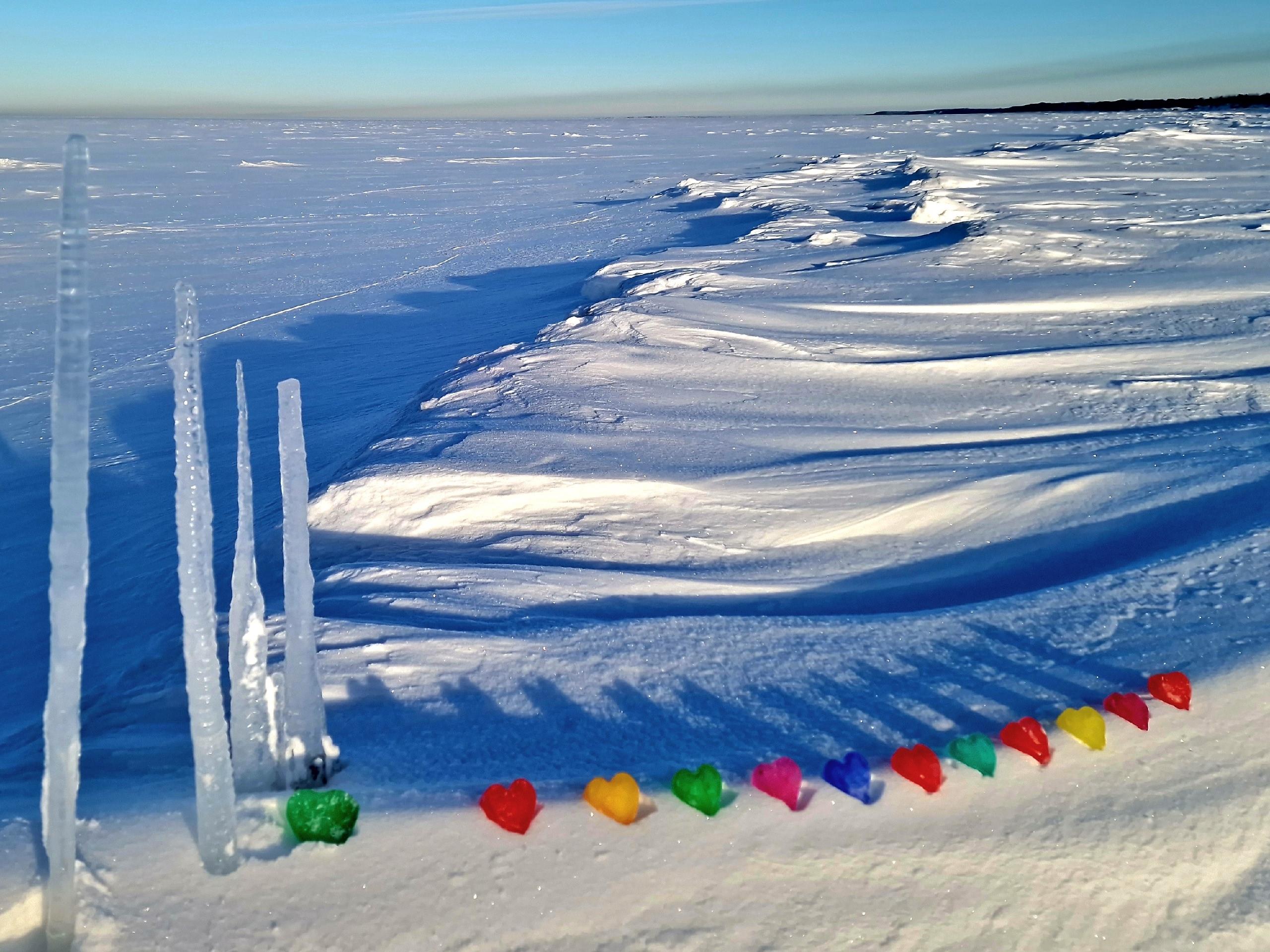 Людмила Хабарова фотографирует побережье острова Ягры. В конце февраля она добавила в кадр цветные льдинки, сделанные своими руками.