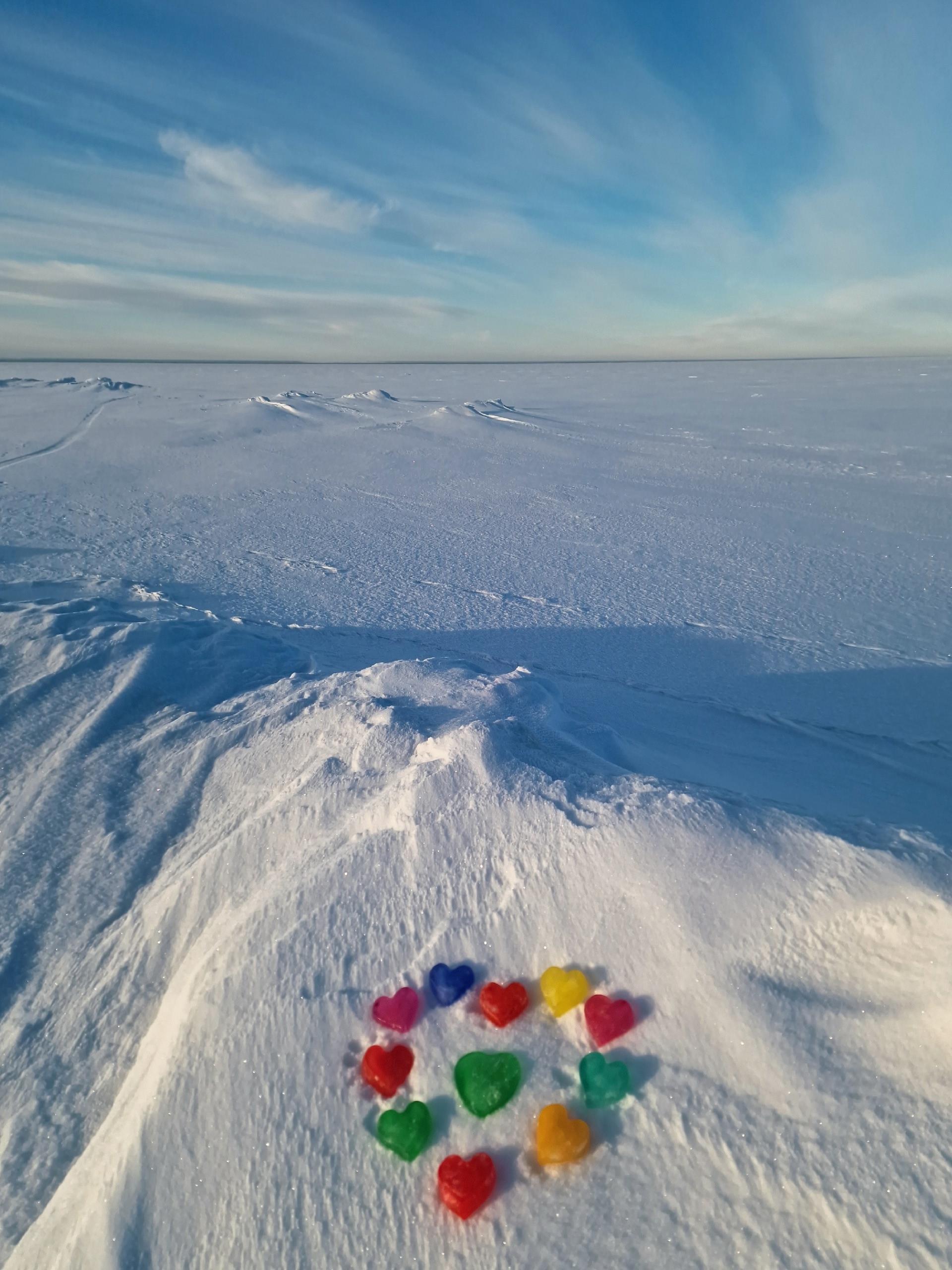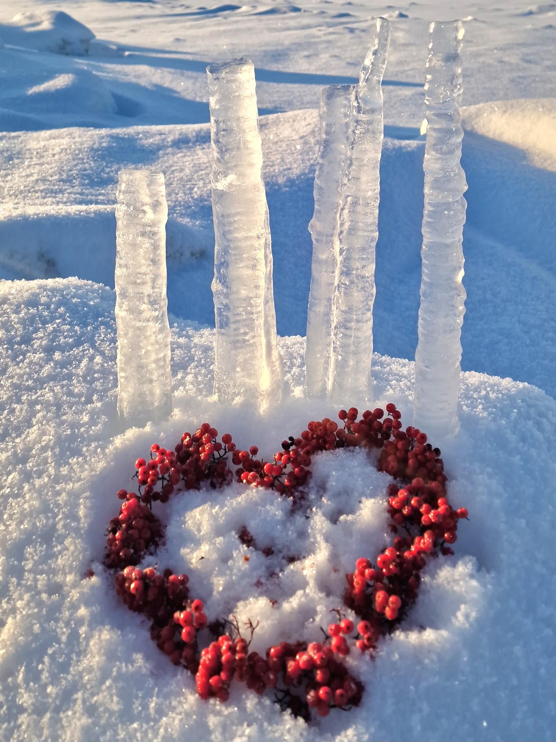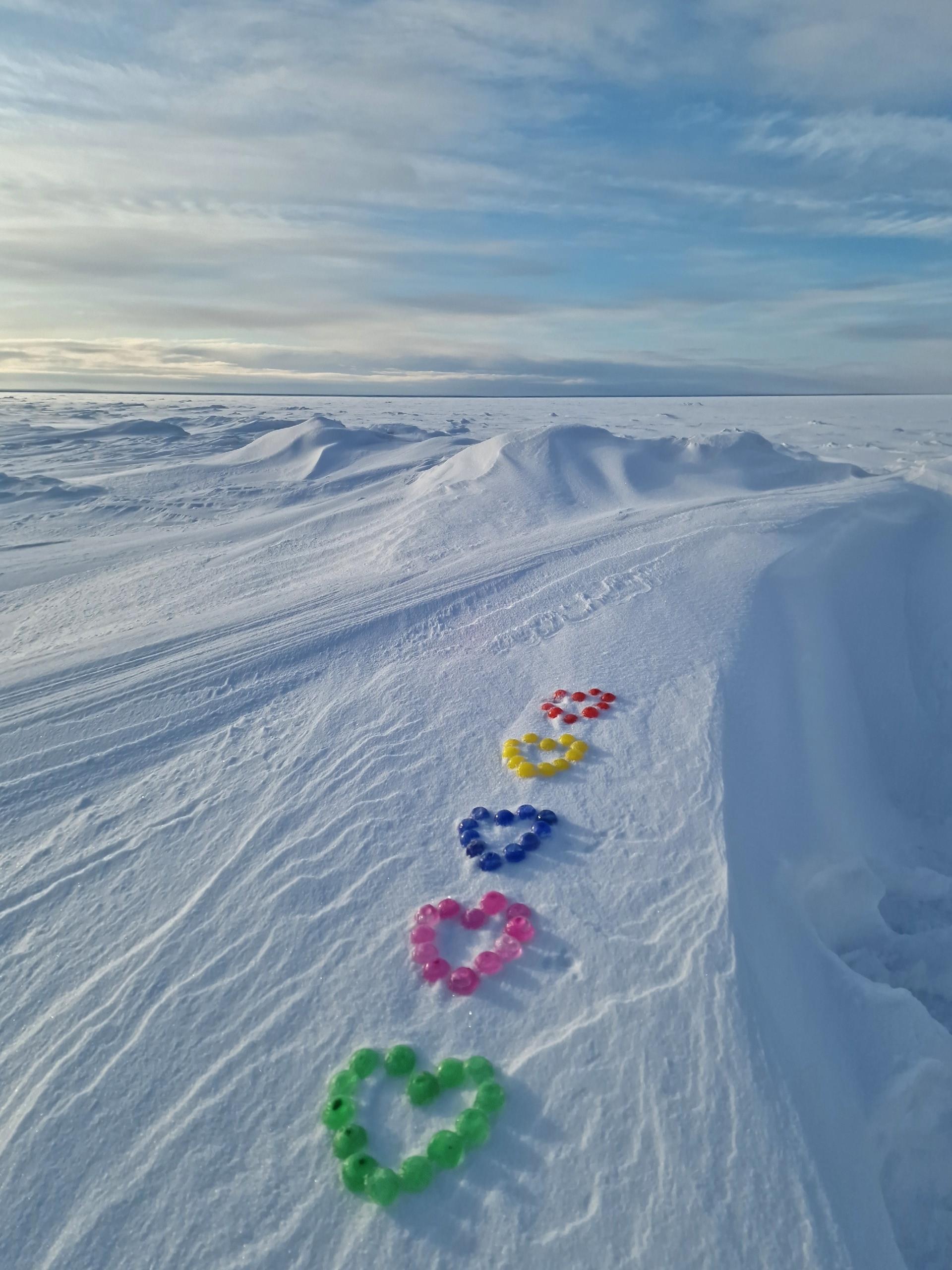 Людмила Хабарова фотографирует побережье острова Ягры. В конце февраля она добавила в кадр цветные льдинки, сделанные своими руками.