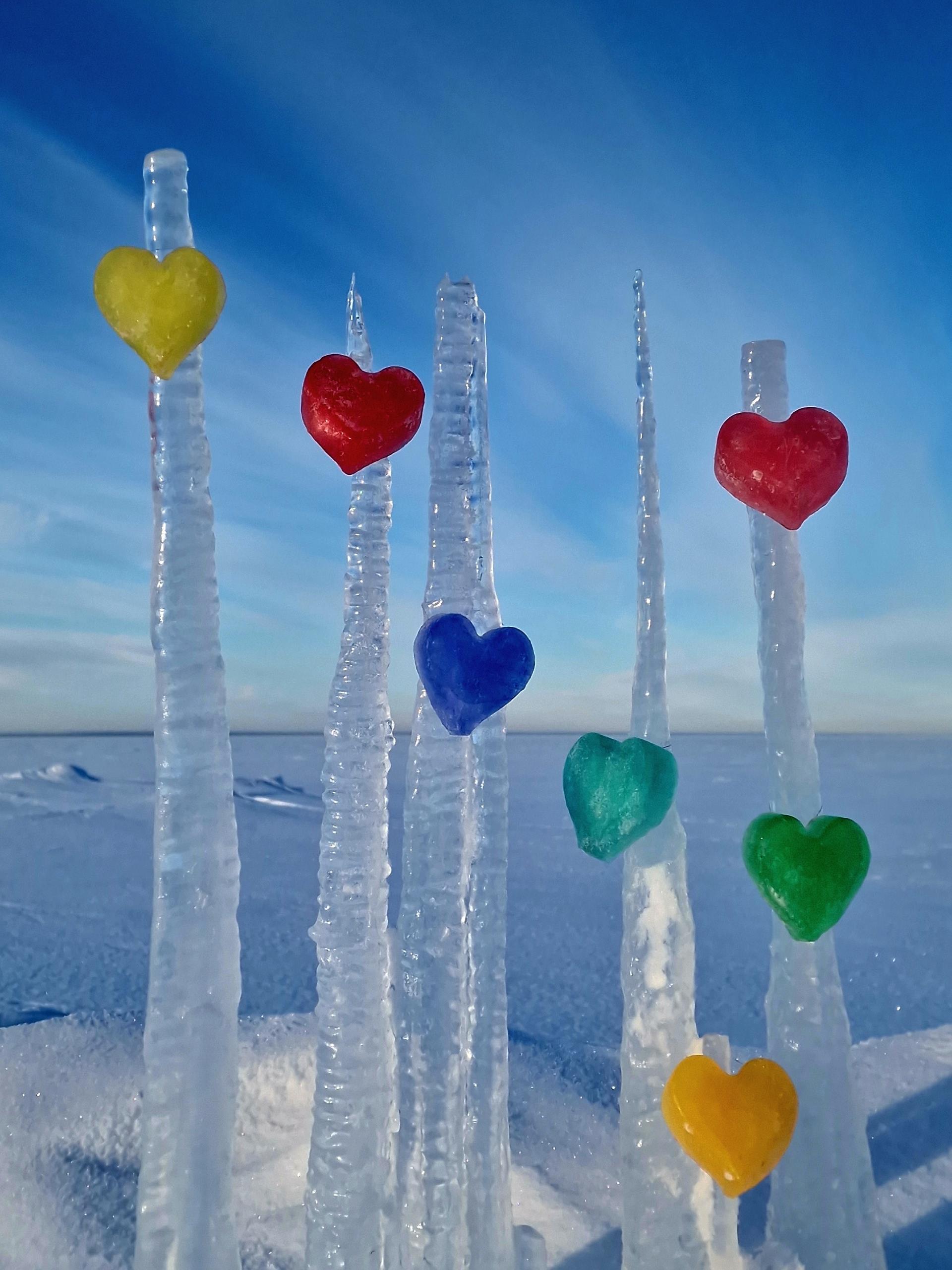 В конце февраля Людмила Хабарова из Северодвинска представила серию фотографий Белого моря с цветными льдинками. Эти украшения она создаёт самостоятельно, замораживая окрашенную воду в холодильнике.