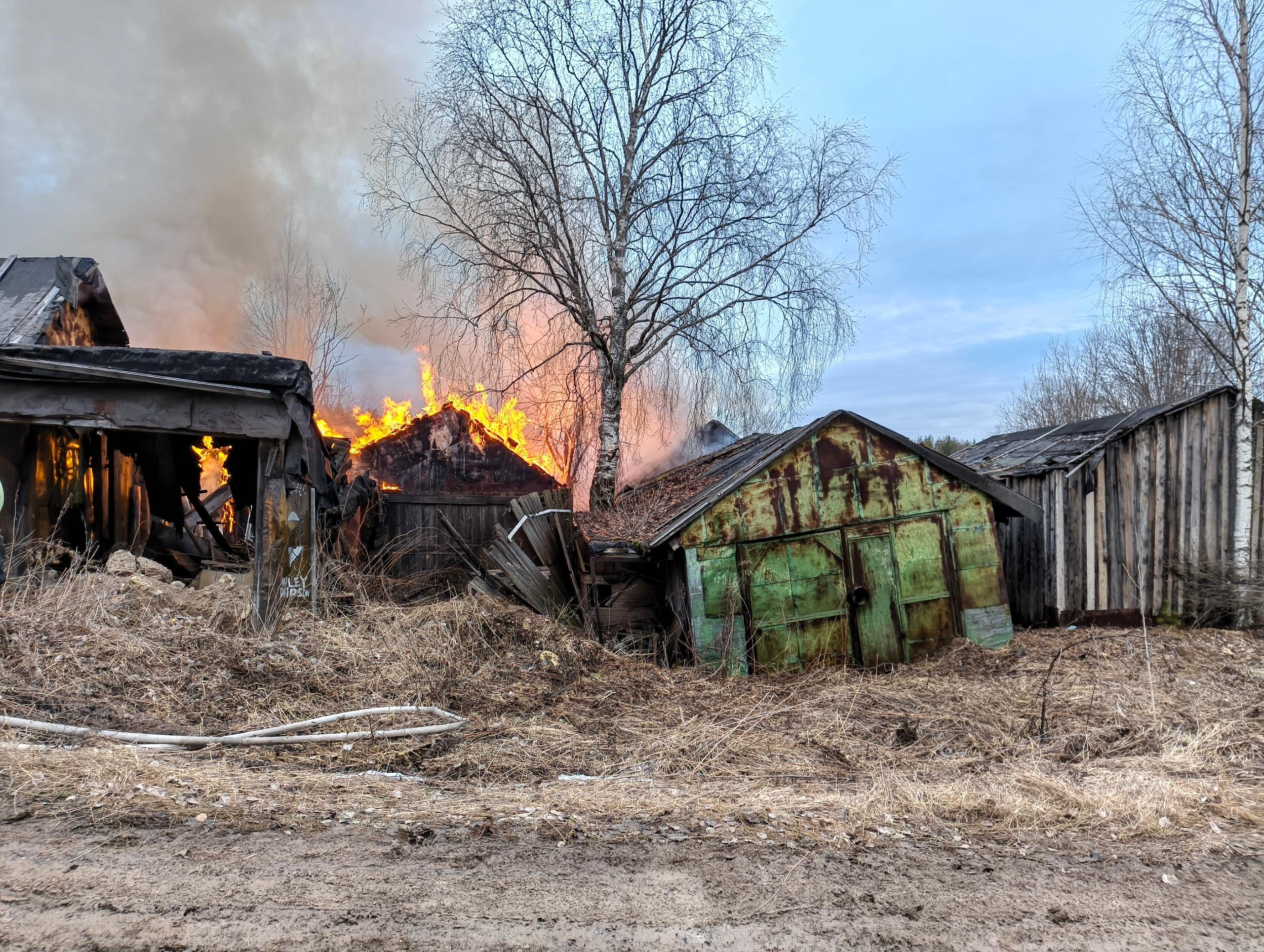 4 апреля в городе Мирный Архангельской области произошел крупный пожар в гаражном кооперативе. Огонь полностью уничтожил восемь старых деревянных построек.