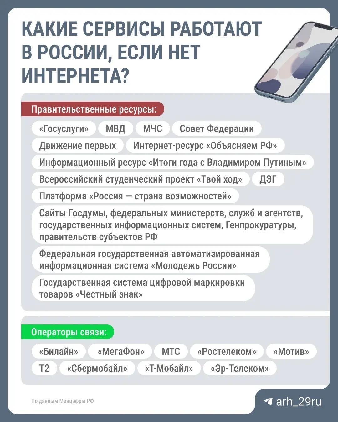 Доступные сайты при отключениях интернета в Архангельской области