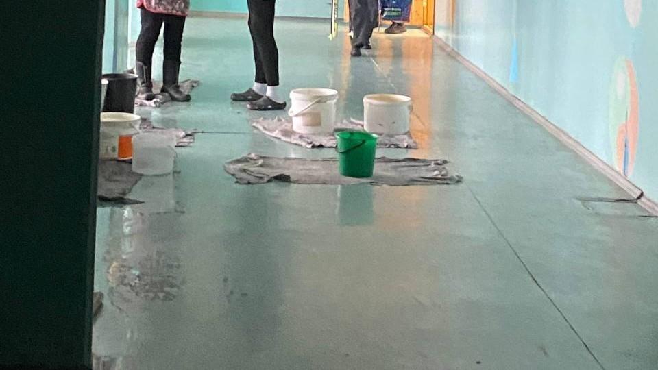 Днём 13 ноября в сети также появилась информация о потопе на втором и третьем этажах школы №7. Очевидцы разместили в Telegram-канале снимки повреждённого потолка и пола, залитого водой.