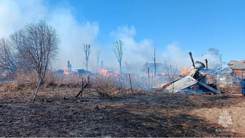 Сообщение о возгорании поступило в МЧС в 10:20 утра. К моменту прибытия первых подразделений горело несколько строений. Открытое горение было ликвидировано к 12:56.