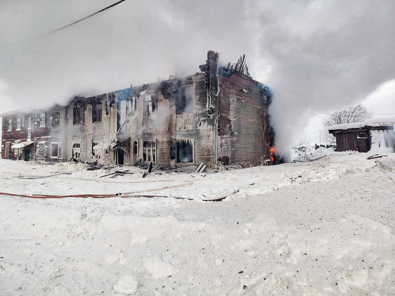 Пожарные ликвидировали возгорание в двухэтажном доме в Коноше. Утром они продолжили работу для предотвращения повторных возгораний.