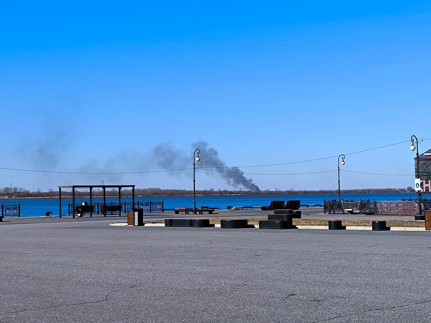 Жители центра Архангельска наблюдали за плотным чёрным дымом от пожара.