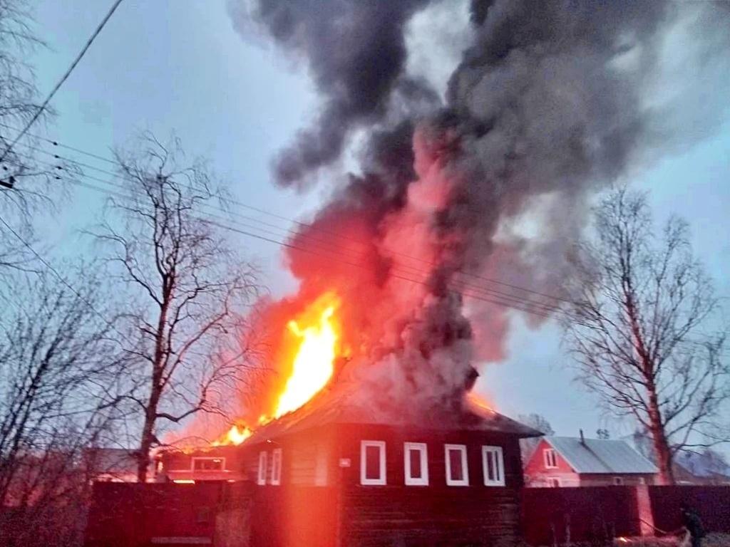 Утром 26 апреля в городе Онега загорелся частный дом. Соседи заметили возгорание и сообщили о нём по номеру 112. К моменту прибытия пожарного расчёта ПЧ-43 строение уже было сильно охвачено огнём — горела кровля.