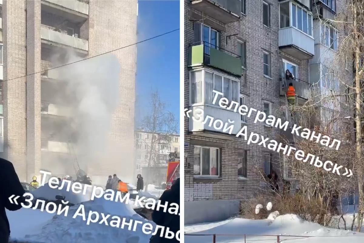 Пожар в Архангельске: люди выпрыгивают из окон дома