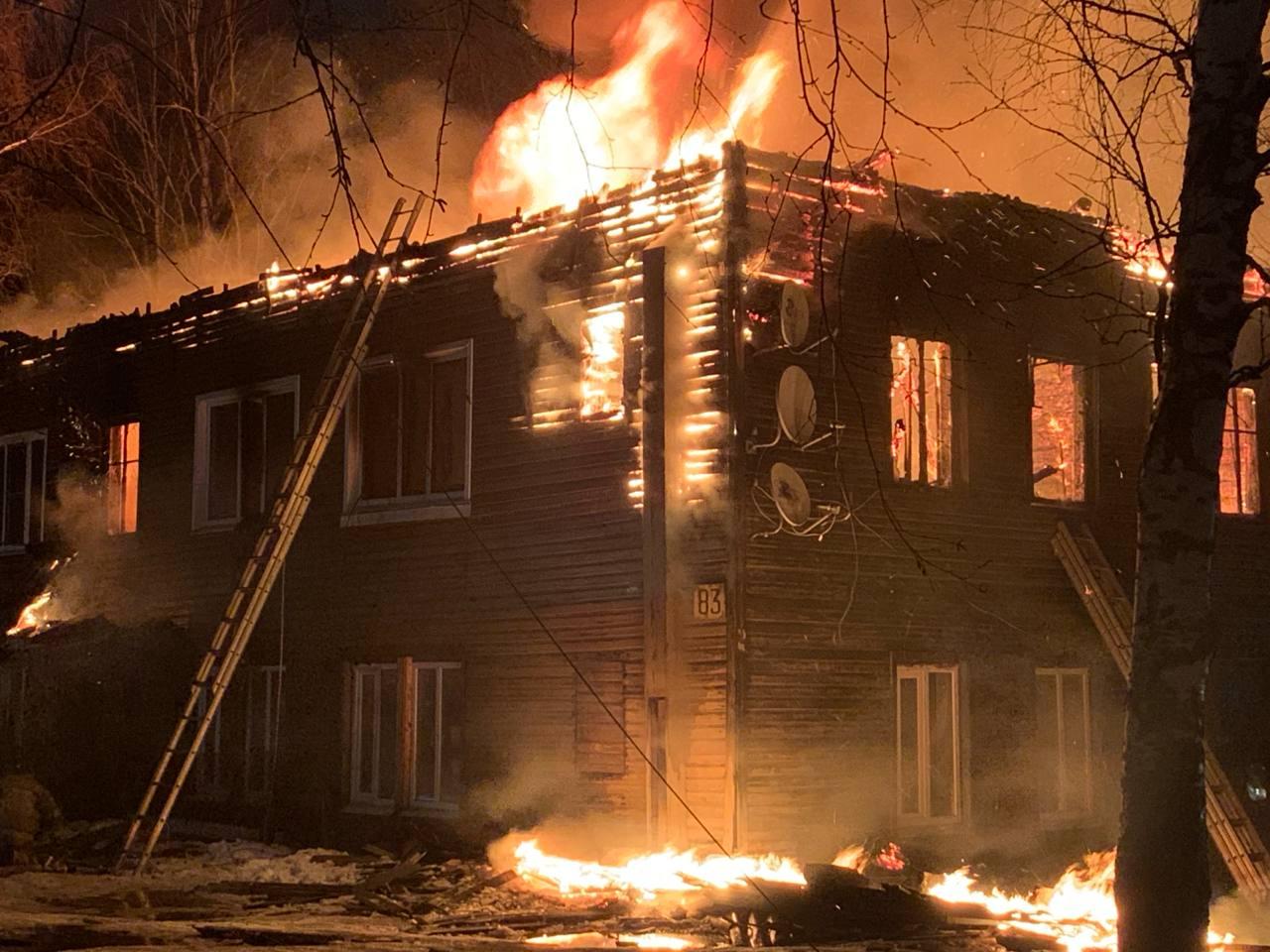 В МЧС Архангельской области сообщили: «16.12 в 21:03 на ул. Революционная, 83 произошел пожар в многоквартирном жилом доме. В результате пожара повреждено: стены, перекрытия, кровля по всей площади. Пожар ликвидирован, пострадавших нет».