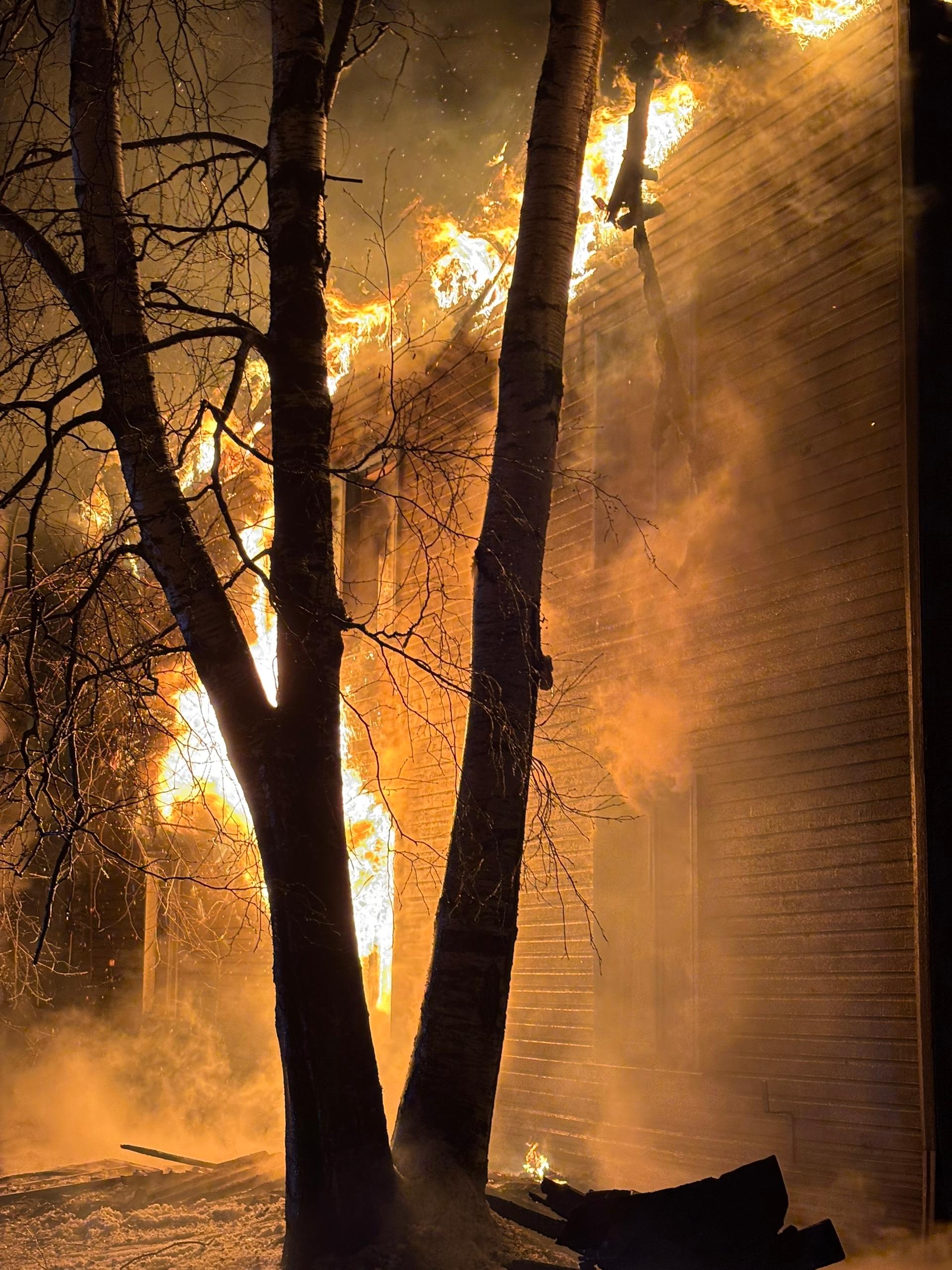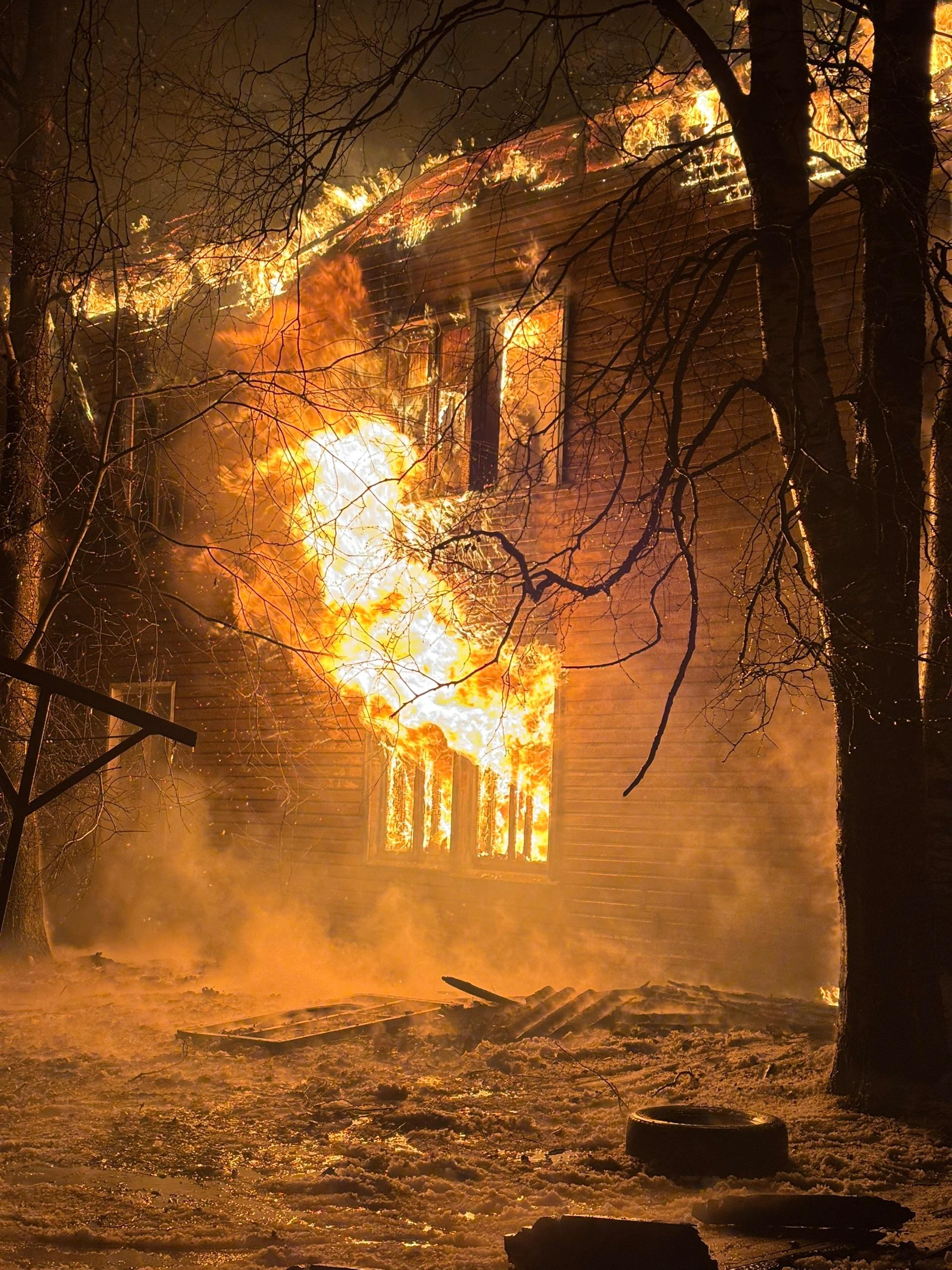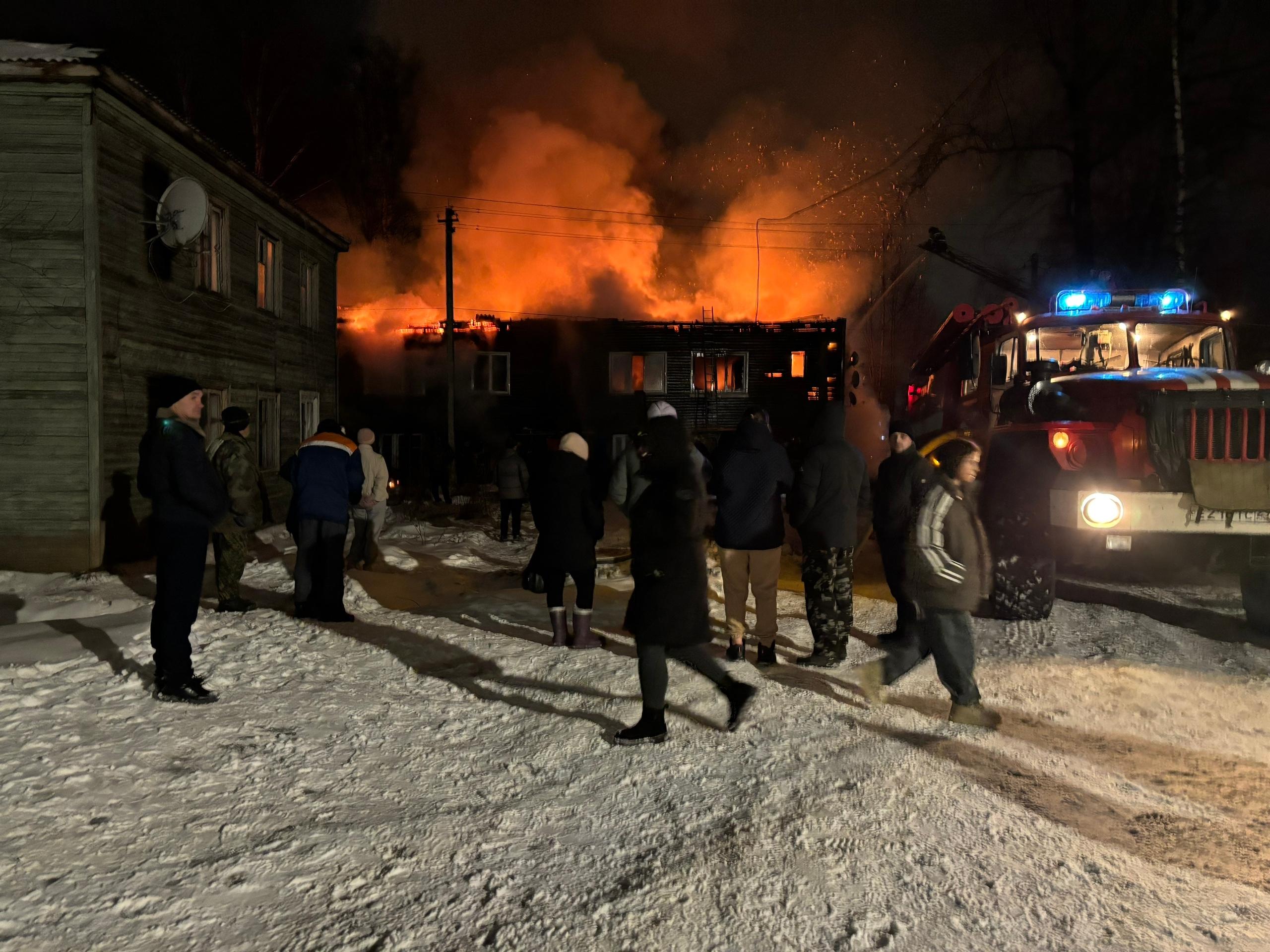 Пожар в Архангельской области: у аварийного дома обрушилась крыша