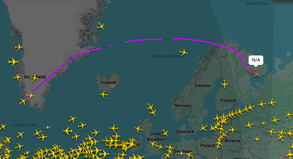 Согласно данным сервиса Flightradar, речь идет о Boeing 787. Воздушное судно стартовало с авиабазы Эндрюс под Вашингтоном, пролетело над Гренландией, Норвегией и Финляндией, после чего утром 20 февраля вошло в воздушное пространство России в Мурманской области.