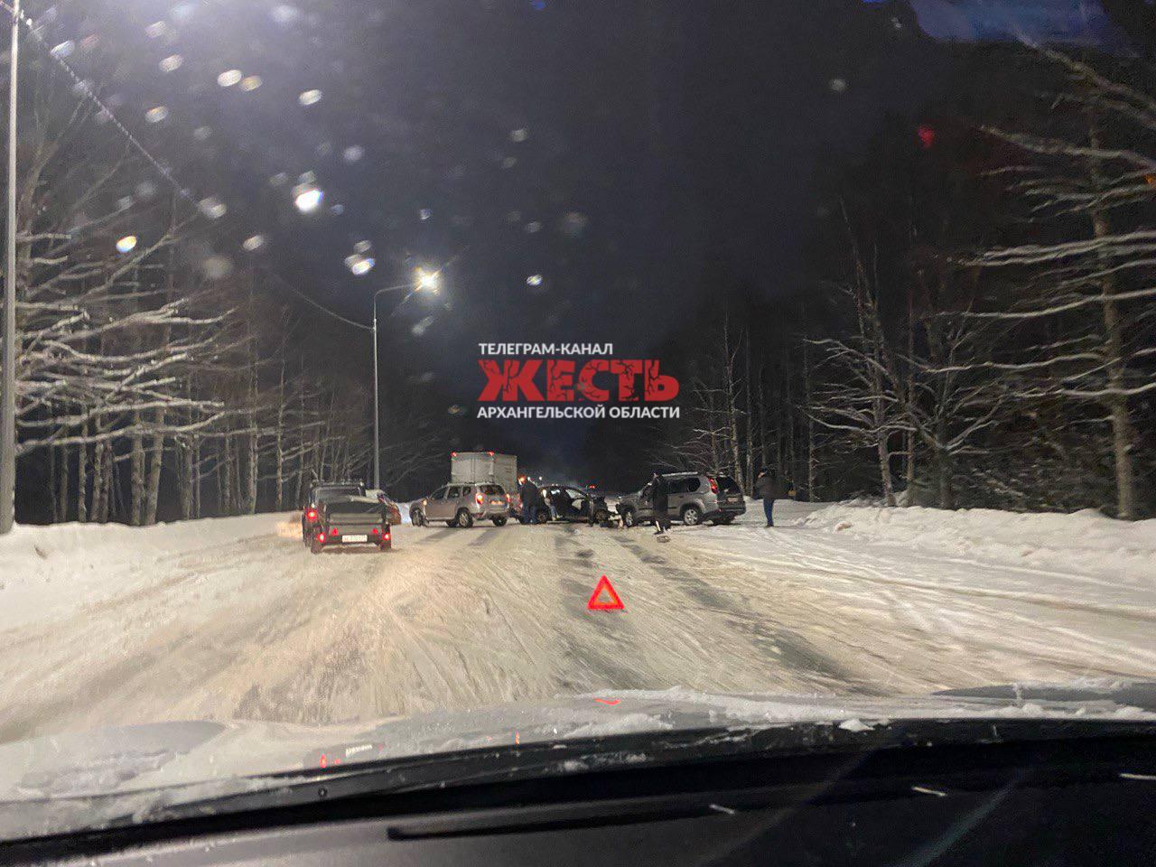 Информация о возможных пострадавших и причинах столкновения уточняется в УМВД Архангельской области.