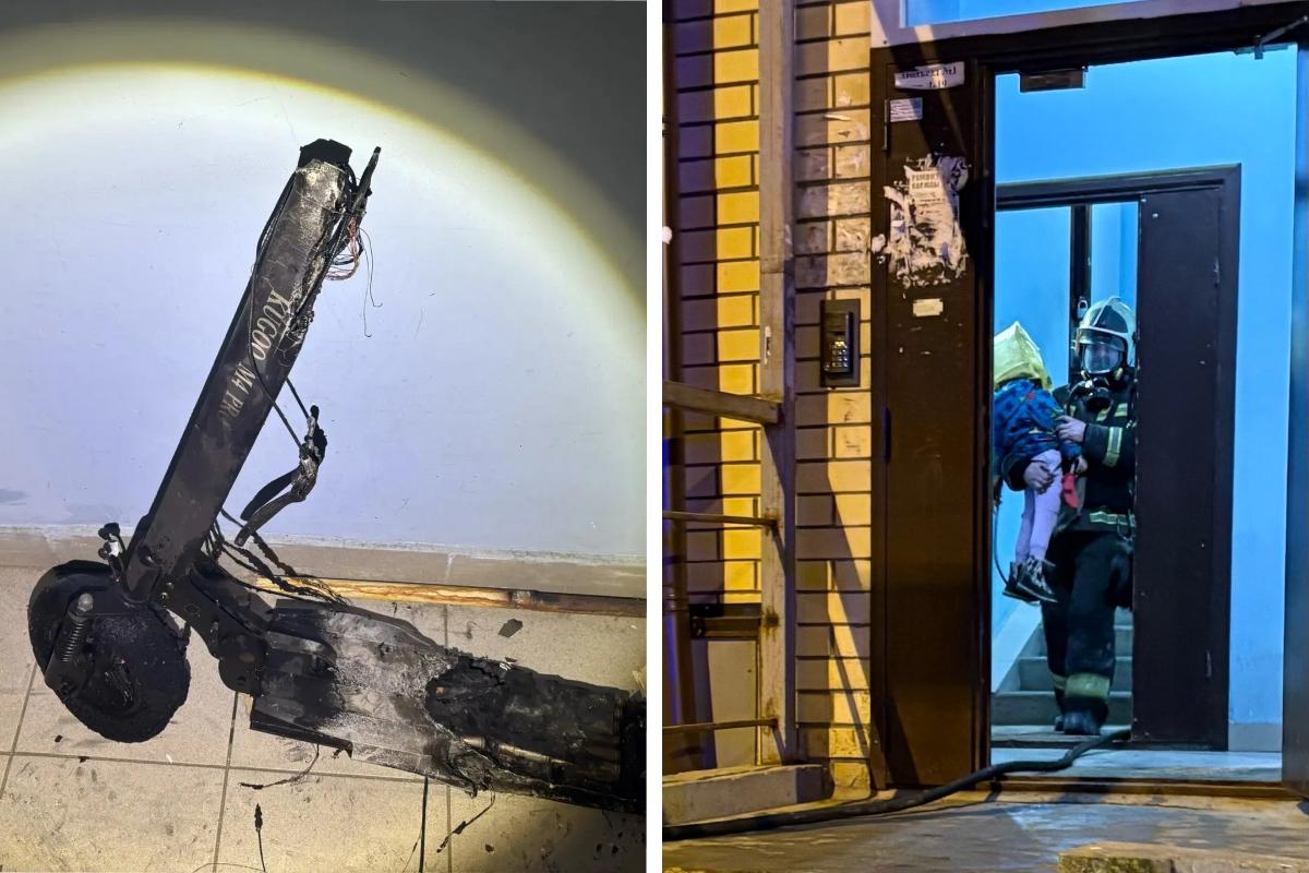 В результате возгорания электросамоката в жилом доме пострадали двое, пожарные эвакуировали девять человек, в том числе детей.