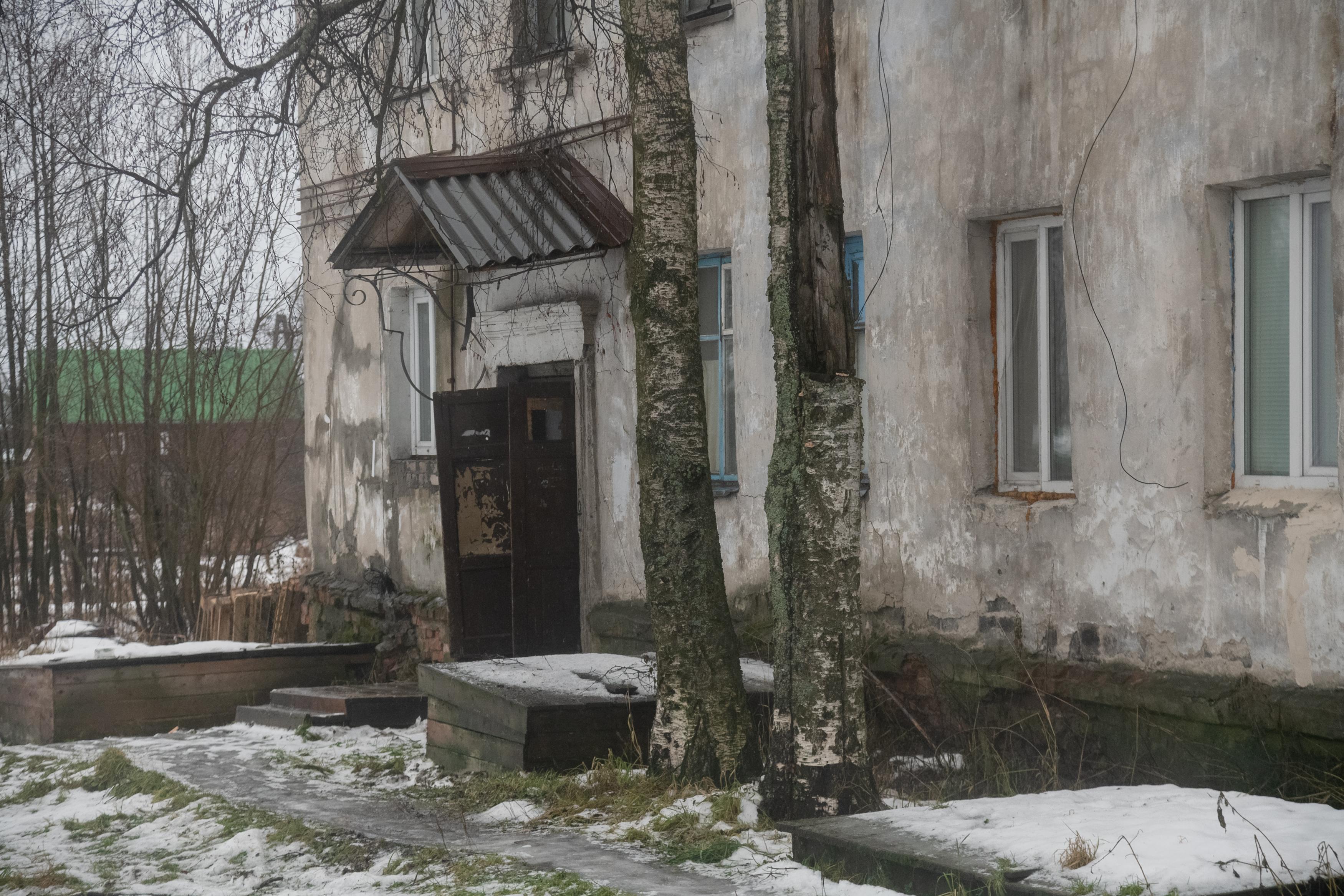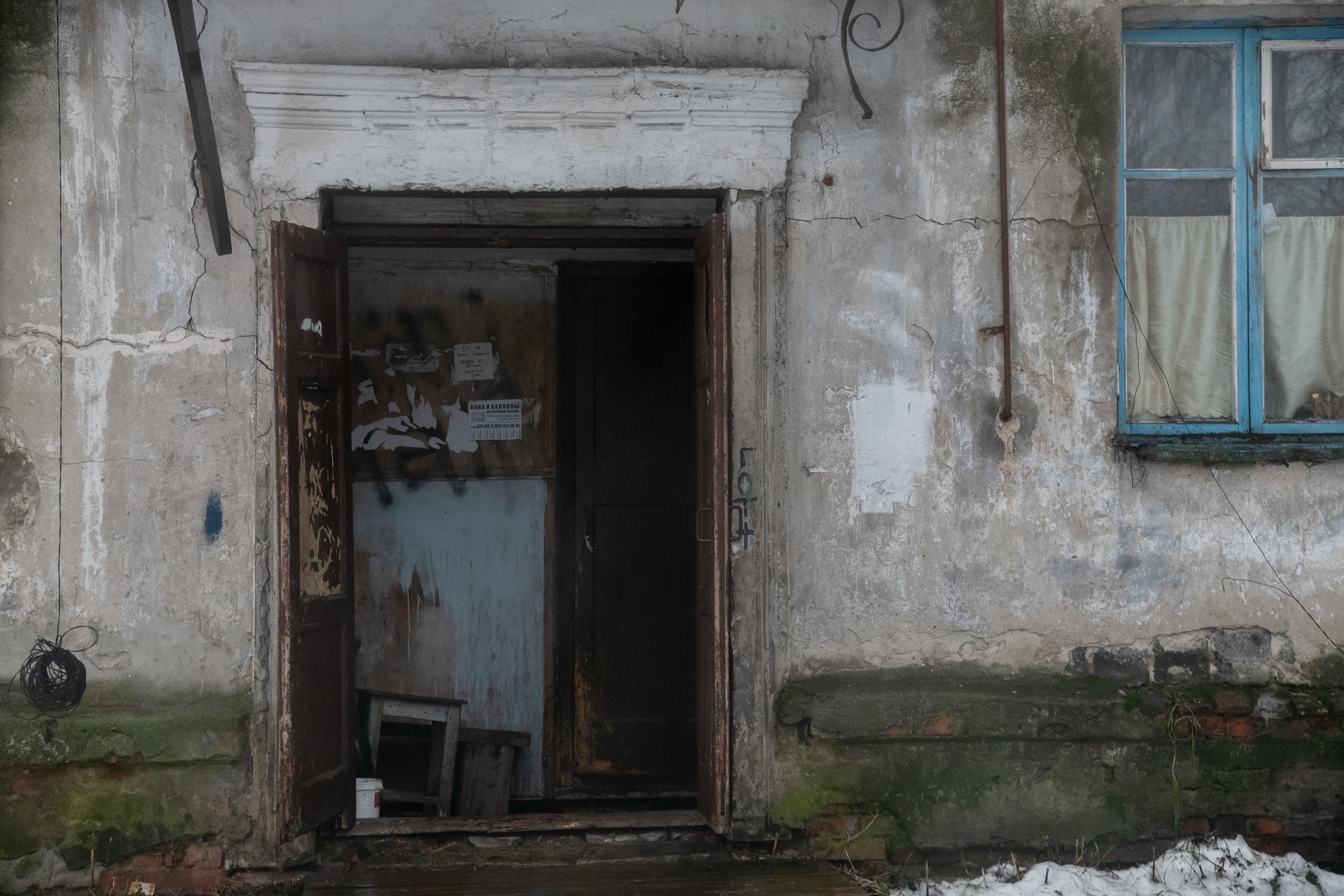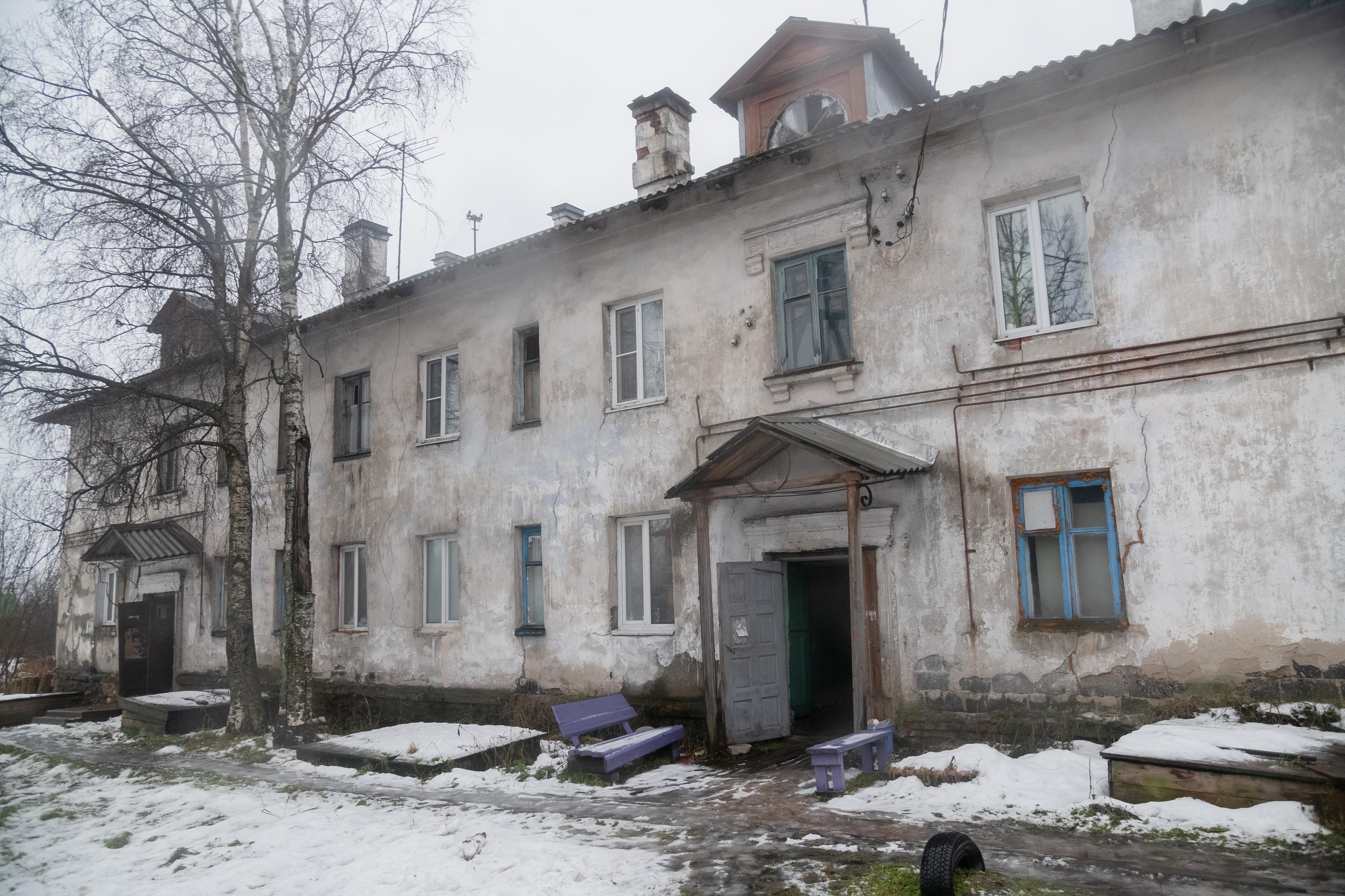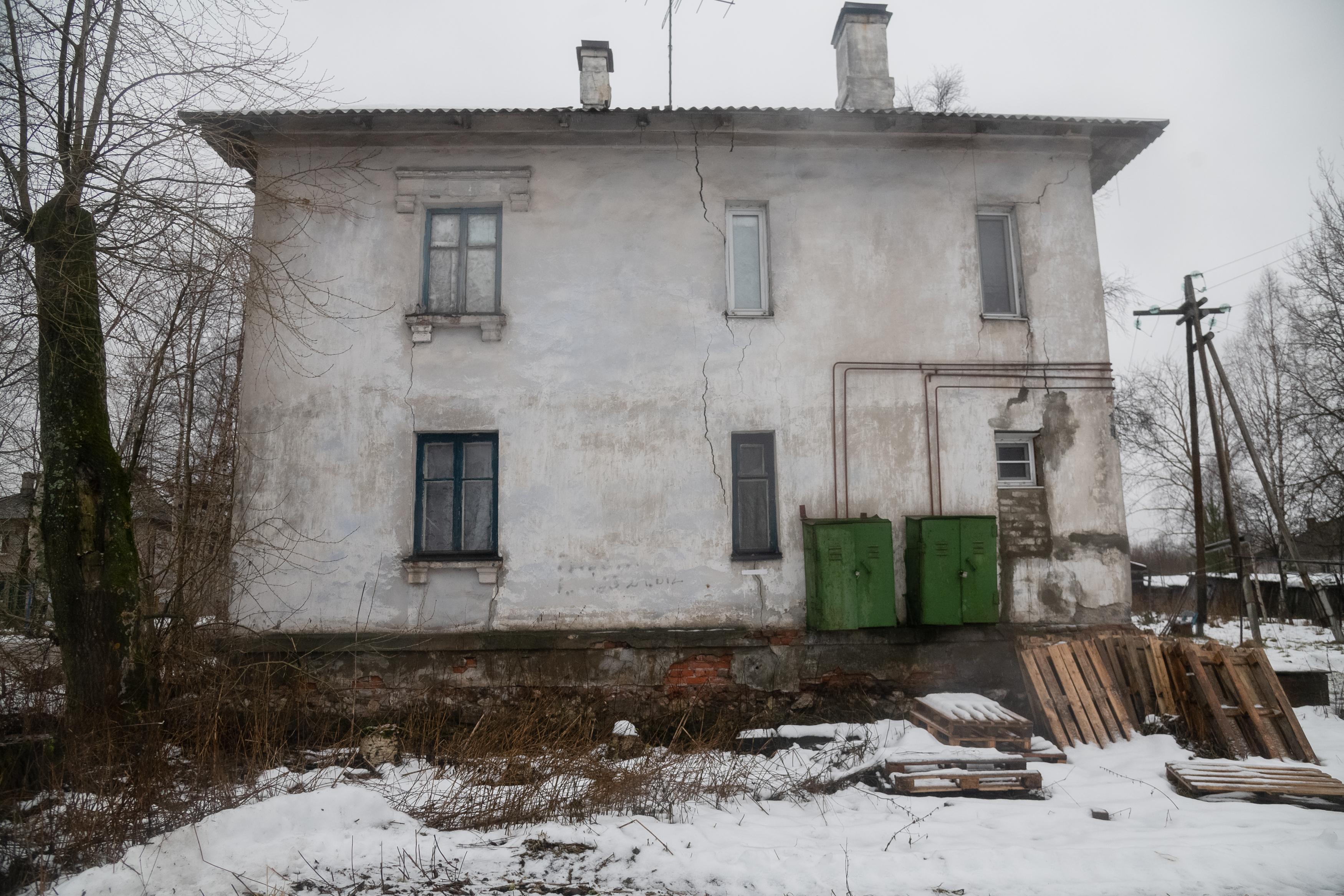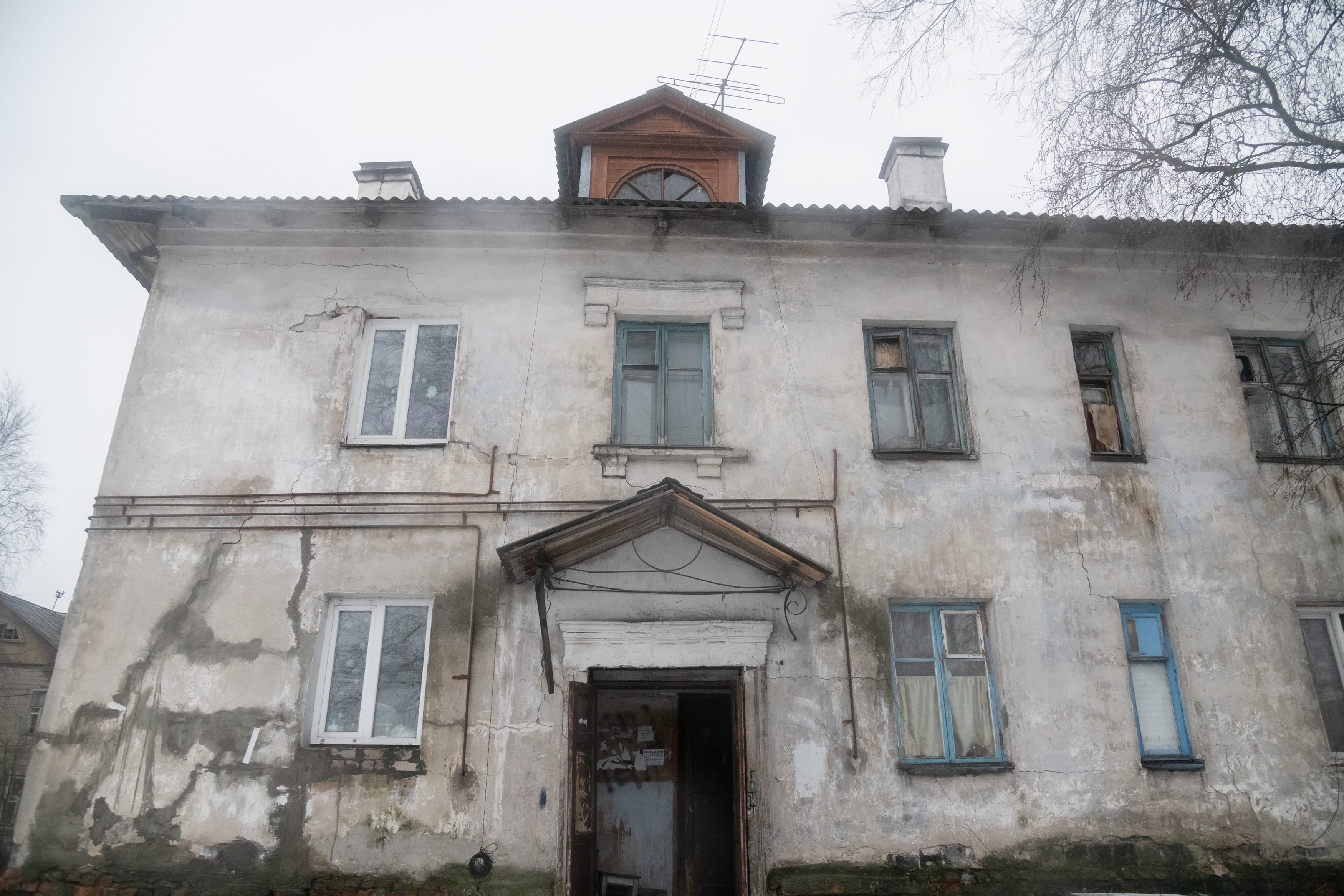 Здание постепенно разрушается, но в квартирах по-прежнему проживают люди.