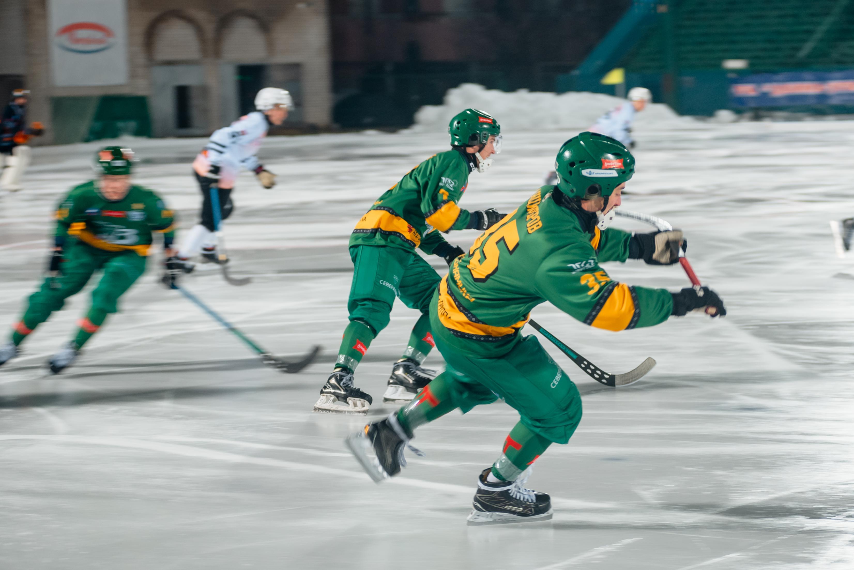 На стадионе «Хромпик» в Первоуральске начался четвертьфинальный поединок чемпионата России между архангельским «Водником» и свердловским клубом «СКА — Уральский Трубник».