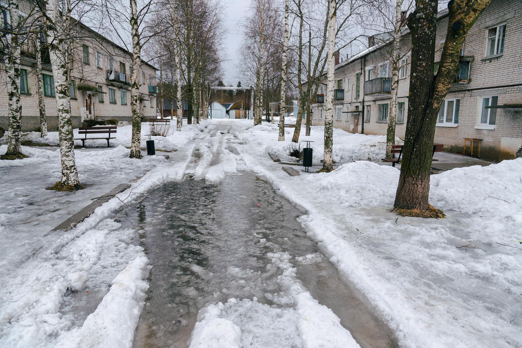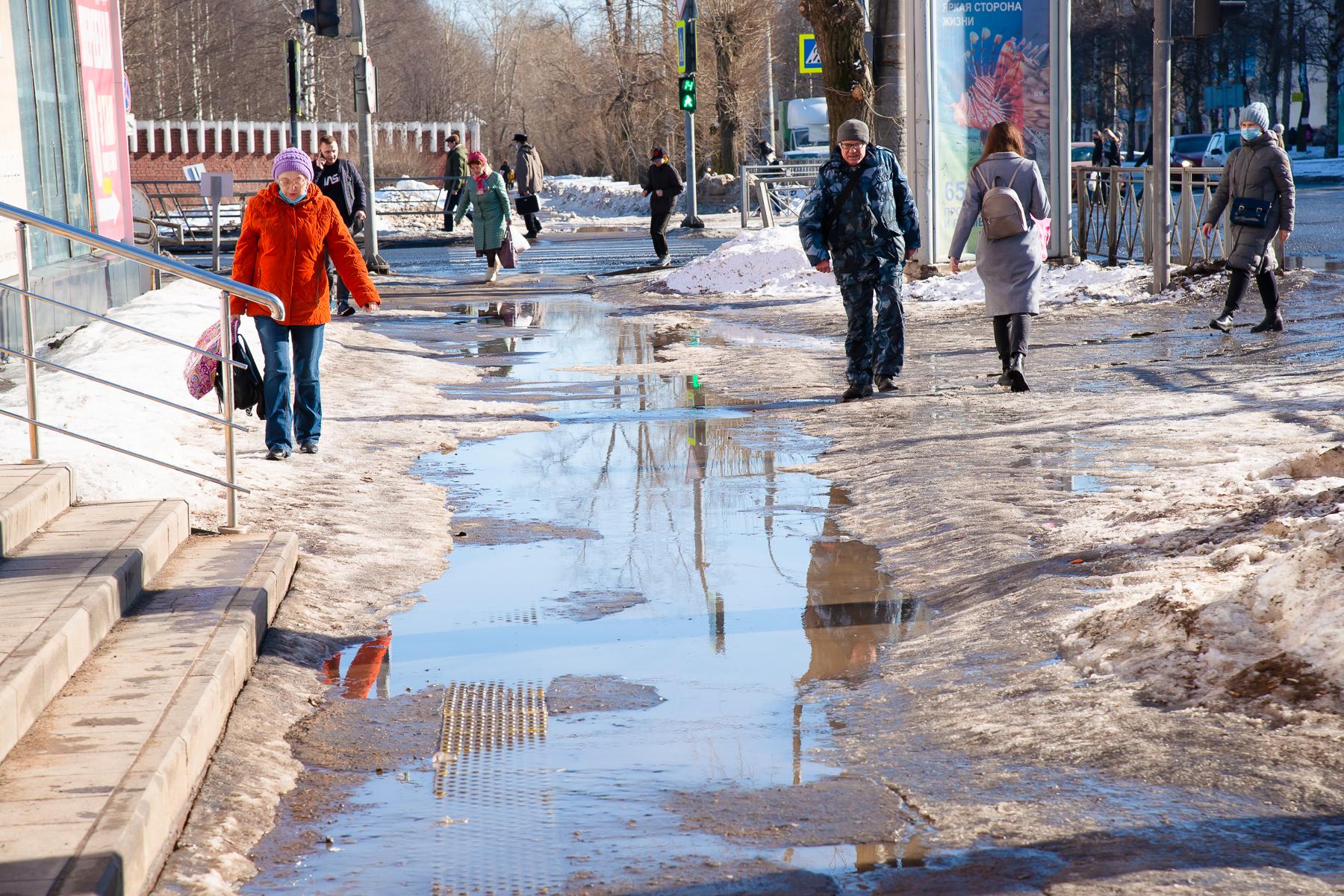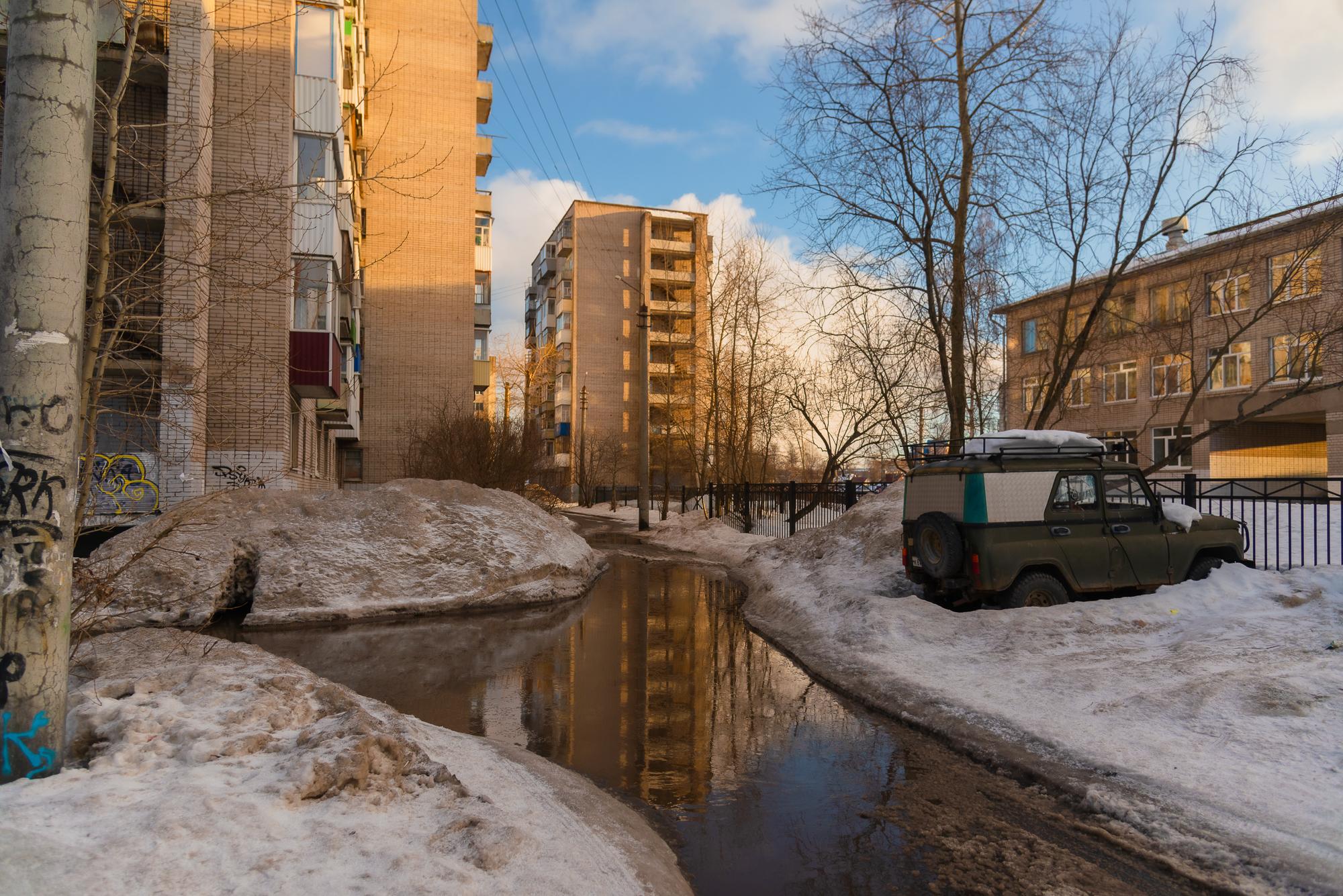 В конце марта 2021 года в городе ещё сохранялся довольно плотный снежный покров. Солнечные дни, однако, уже предвещали весну, хотя повсеместные большие лужи указывали на то, что до полного схода снега было далеко.