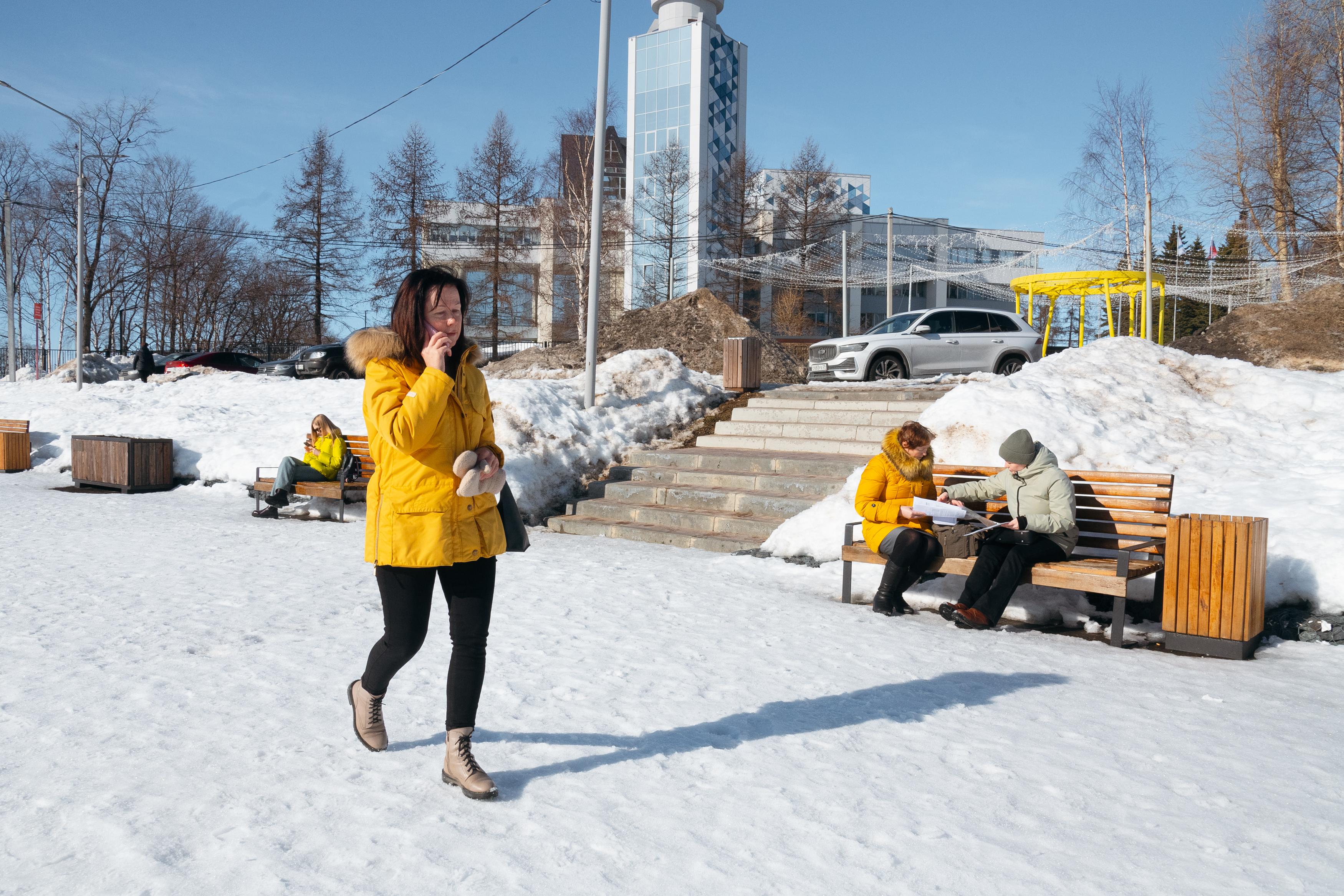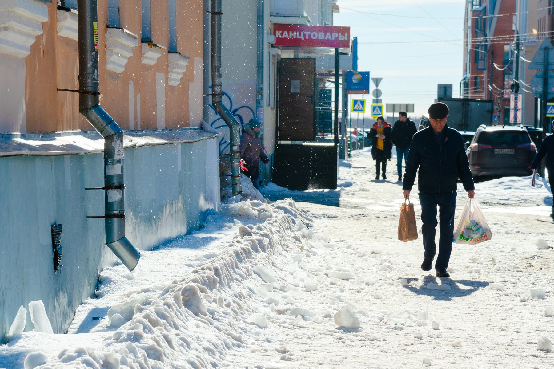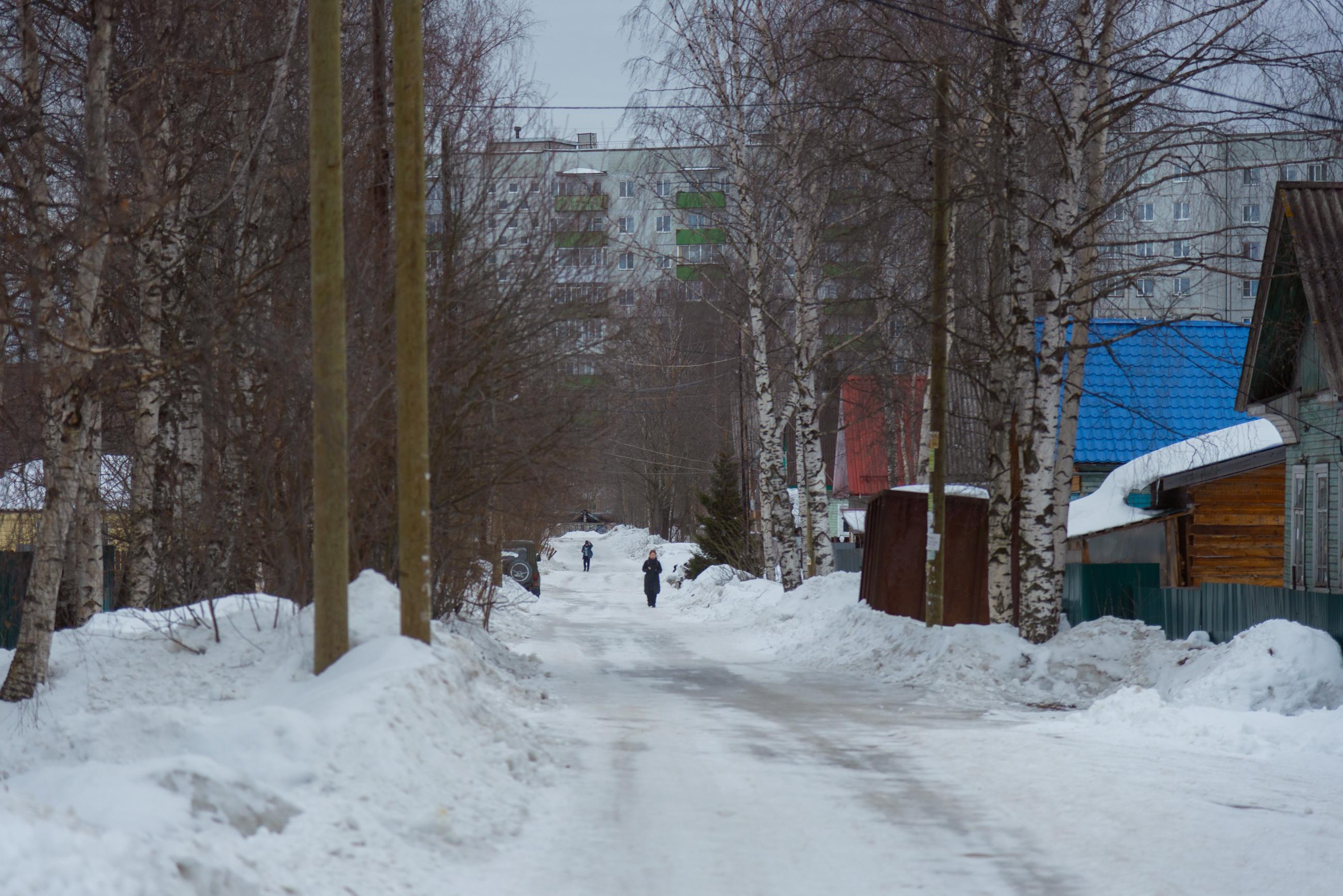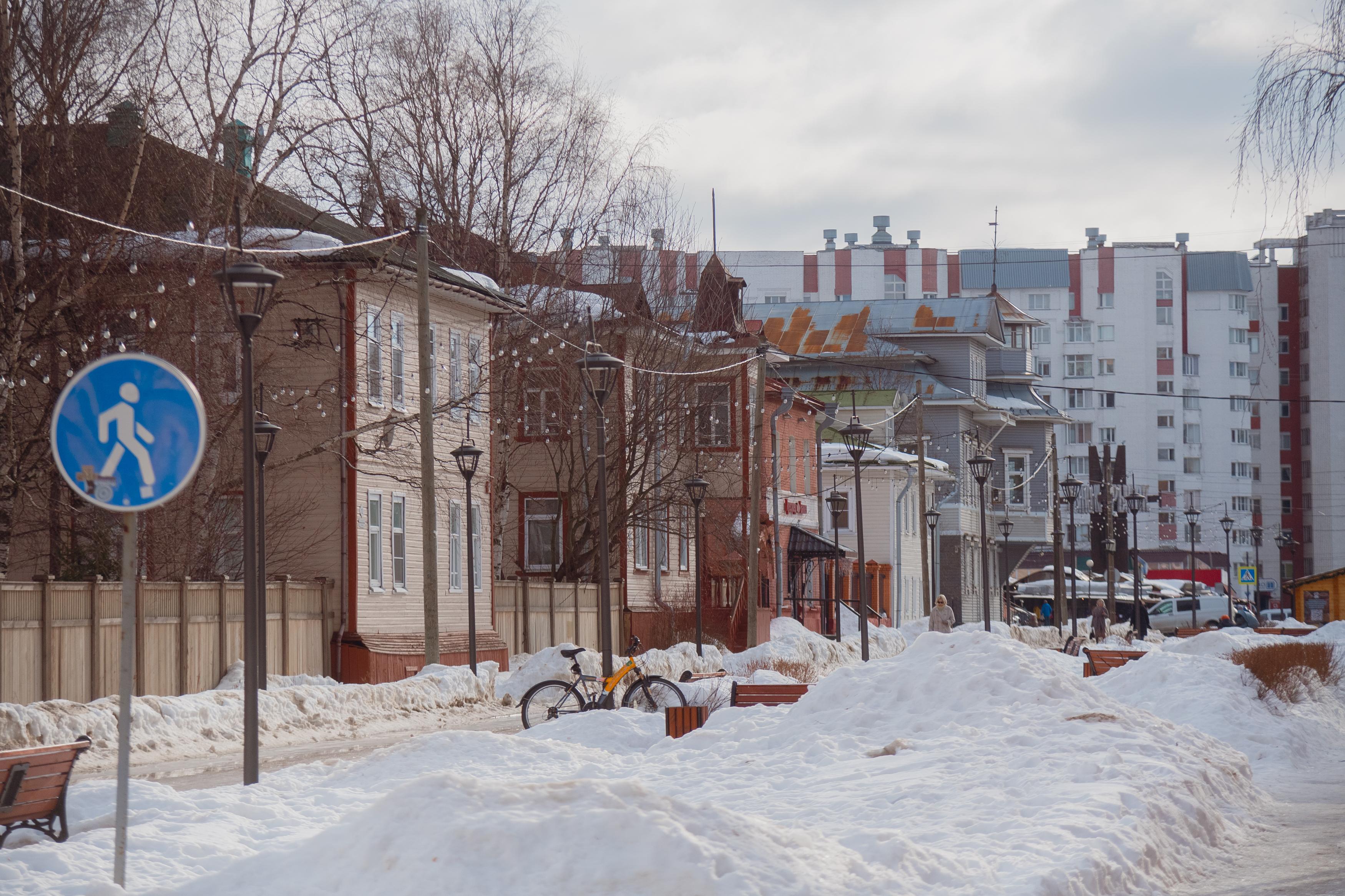В конце марта 2021 года в городе ещё сохранялся довольно плотный снежный покров. Солнечные дни, однако, уже предвещали весну, хотя повсеместные большие лужи указывали на то, что до полного схода снега было далеко.