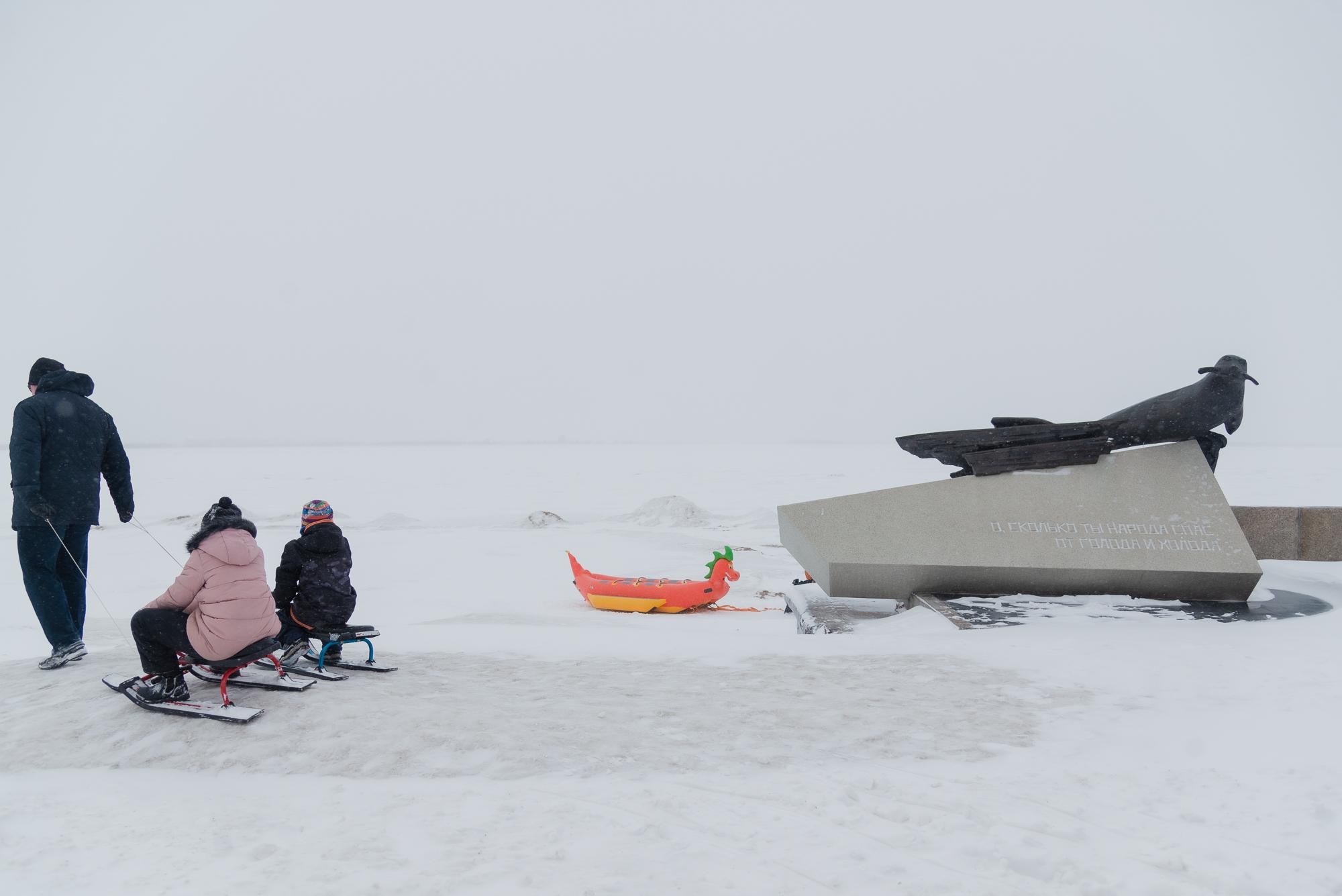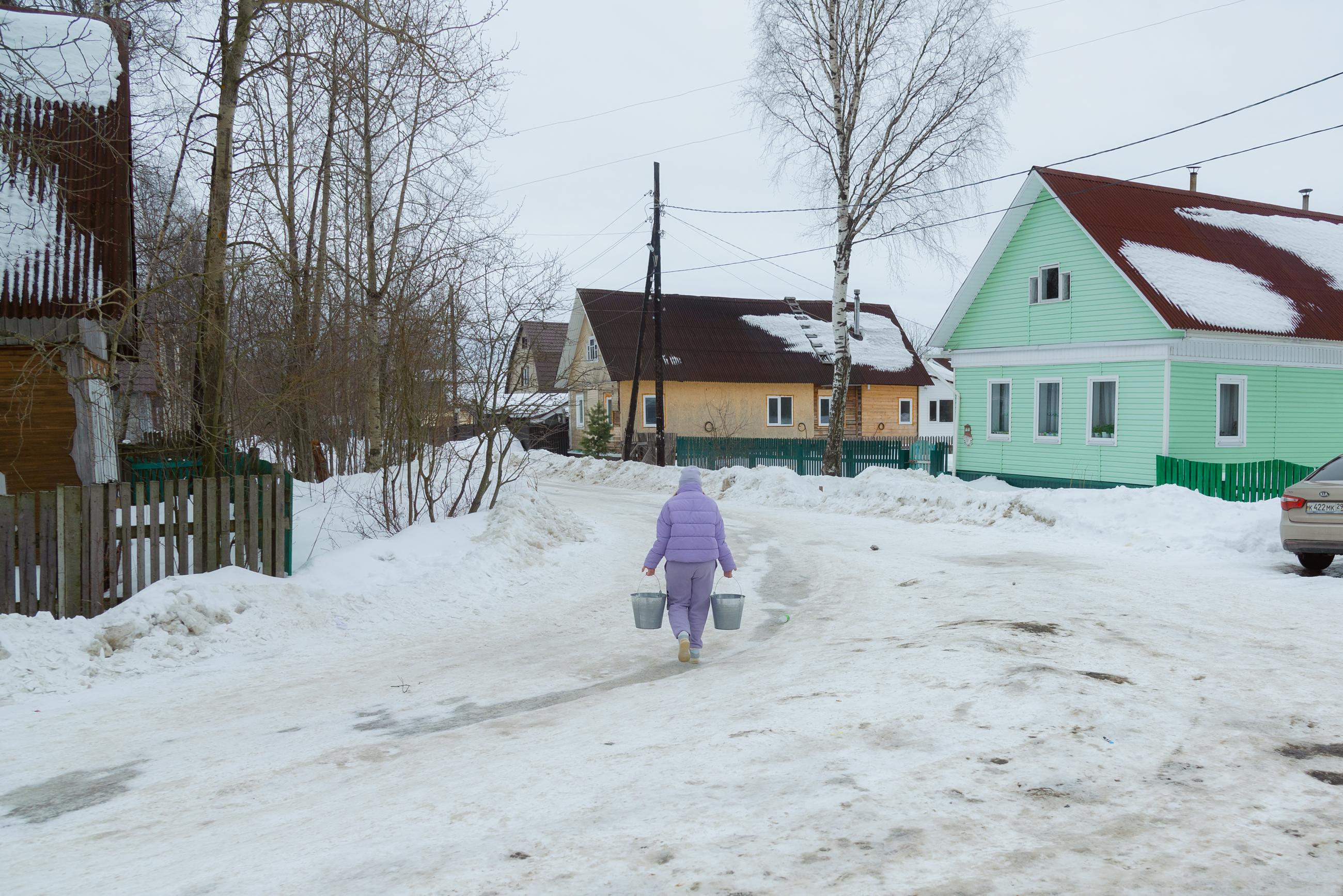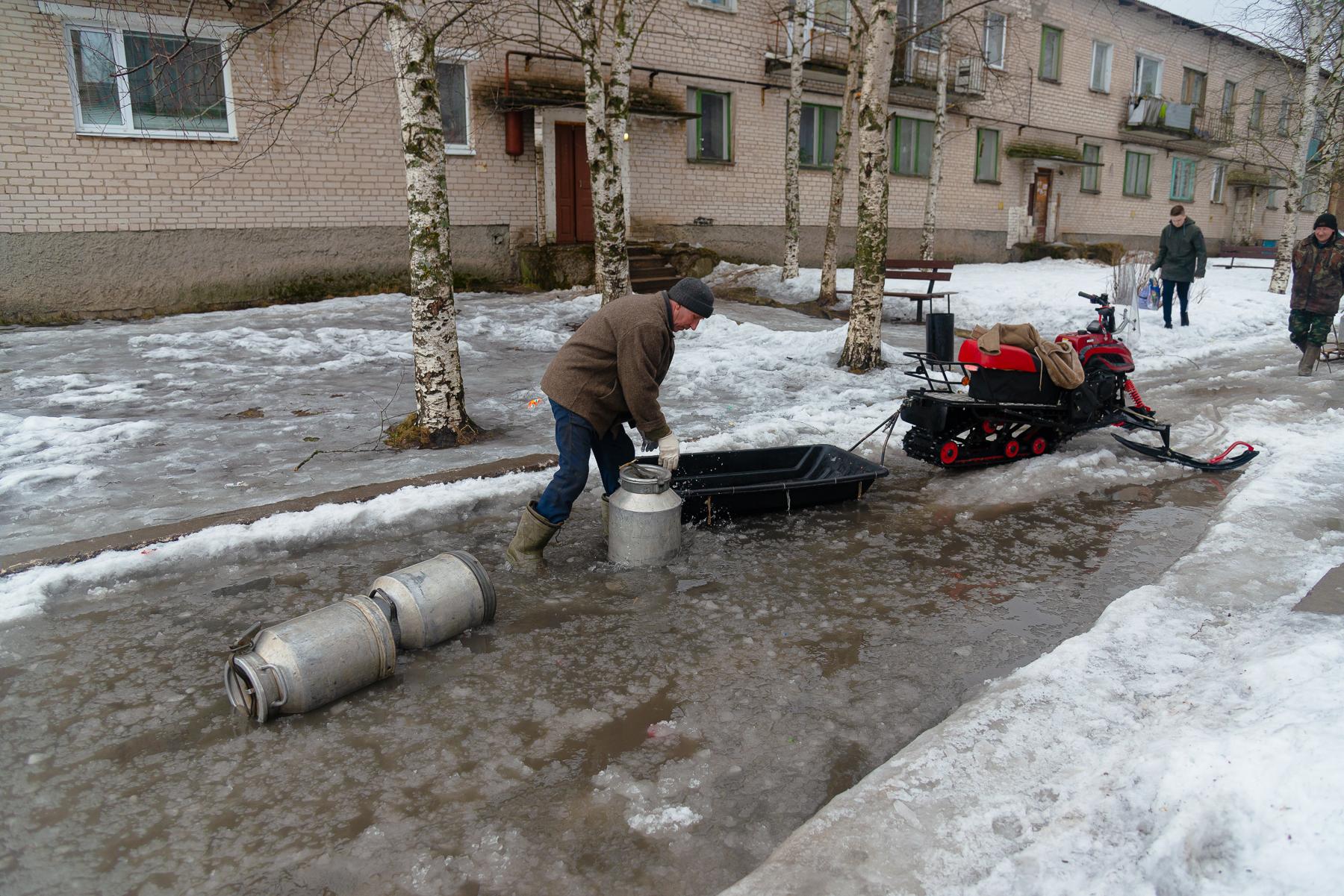 Снега в 2022 году также было много: архангелогородцы всё ещё катались на лыжах по набережной. При этом во многих дворах уже стояла вода, подтапливая проезды.